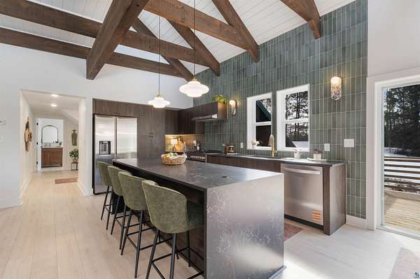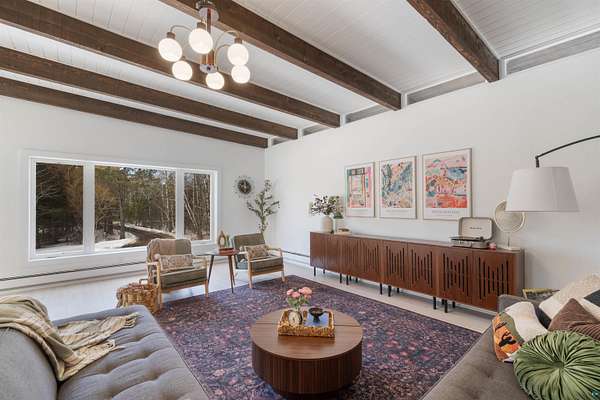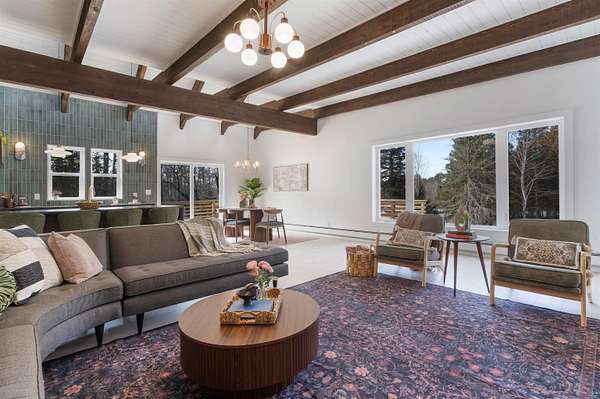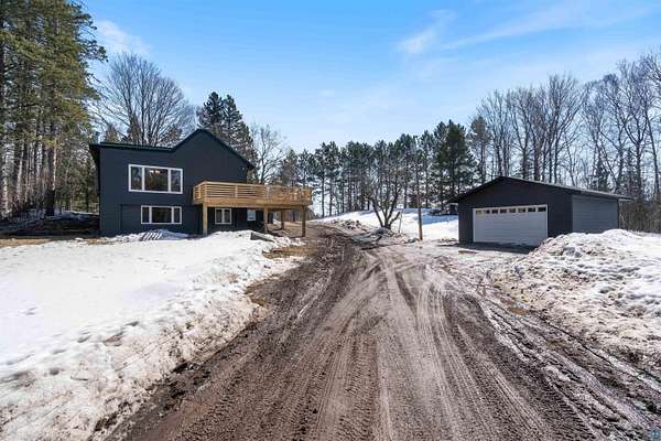 This mid-century inspired home has been updated from top to bottom, featuring a brand-new two-car garage and a massive 40x88ft 10-car pole barn with 240V power, perfect for hobbyists, contractors, or extra storage. Inside, you’ll find a completely redesigned kitchen with locally fabricated quartz countertops with a waterfall-edge island, brand new appliances, new cabinets, and custom full-wall tile. The home offers all new flooring, 4 new bathrooms, and a spacious main-floor primary suite with a walk-in closet. There is main-floor laundry, plus an additional laundry area in the basement. The lower level has multiple large living areas including a wood-burning fireplace. Major upgrades include new windows and doors, new siding, all new plumbing, a new well, new septic system, brand-new wraparound red cedar deck, and nearly all new wiring. The metal roof was done within the last couple of years. This is a rare opportunity to own a fully renovated mid-century home with modern systems, high-end finishes, and exceptional outbuilding space all on 10 acres of land. Work done by licensed contractor with necessary permits and inspections. Owner is an agent.