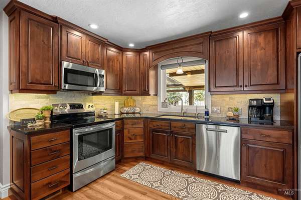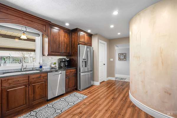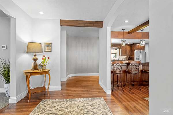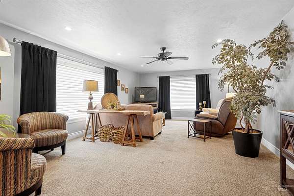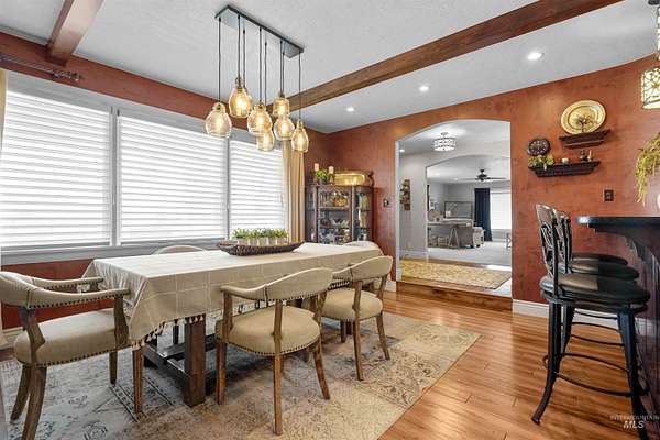 Welcome to this beautifully maintained and thoughtfully updated property offering space, function, and character both inside and out. This 3 bedroom, 3 full bathroom home has been meticulously cared for and features a fully updated main level with stylish finishes and a warm, inviting feel throughout. The sunken dining room adds a unique architectural touch, creating a great space for gatherings and everyday living. Set on nearly 2 acres, the property provides a rare combination of usable land and versatility. A spacious 30' x 48' shop includes an oversized RV/boat door and an enclosed heated/cooled office space, ideal for storage, projects, or hobbies. In addition, there is dedicated, easily accessible, outdoor RV parking with a 60-amp hookup, offering convenience for larger vehicles or recreational use. Outdoor features include a fenced yard area, a separate fenced pasture, and flood irrigation through BID, making the land well-suited for a variety of uses. A new roof, newer heat pump, and updates galore add peace of mind, while the nearly 3,000 square feet of living space provides room to spread out and enjoy.
