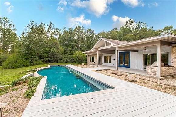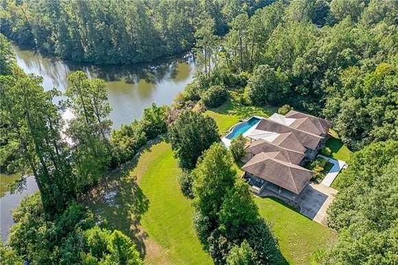 Motivated Seller Welcome to your very own Oasis! Presenting a stunning 3-bedroom, 2-bath contemporary residence nestled on 12.69 acres of pristine land along the Pearl River. This exceptional property offers direct boat access and panoramic water views. Designed with both everyday comfort and luxurious weekend living in mind, this home features an expansive open floor plan flooded with natural light. The gourmet kitchen is equipped with sleek granite countertops, stainless steel appliances, and a state-of-the-art induction cooktop--perfect for the discerning home chef. The primary suite offers a tranquil retreat, complete with a spacious walk-in closet and a spa-inspired bathroom featuring a large walk-in shower. A separate guest suite provides added privacy and comfort for visitors. Step through dramatic 10-foot doors onto the expansive back patio, where an infinity-edge pool visually merges with the river, creating a breathtaking backdrop. Ideal for entertaining or unwinding, the outdoor space includes a full kitchen, outdoor shower, and ample seating for relaxation. Additional features include a whole-house generator, security system, and an irrigation system to maintain the lush landscaping with ease. Although wonderfully secluded, the property offers convenient access to nearby amenities, striking the perfect balance between privacy and proximity. Whether you're seeking a full-time residence or a serene weekend escape, this extraordinary home offers the best in waterfront living. * Flood insurance, IF required, AS LOW AS $877 *