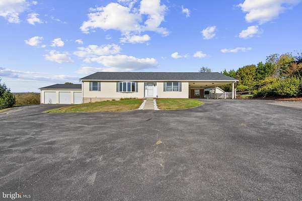 Imagine relaxing on an refinished deck, listening to the birds, and watching wildlife as you take in the serene rolling hills and distant mountains of the Middletown Valley. Despite the peaceful surroundings, you're only minutes from Main Street Middletown's restaurants, schools, shops, and all the charm of small-town USA! This beautiful ranch home sits on 3.59 acres and offers 3 bedrooms (with the potential for a 4th bedroom on the main level or additional bedrooms to be finished in the basement), 3 full baths, and 1,820 sq ft of finished living space on the main level-plus another 1,820 sq ft of unfinished space ready for you to build out and customize to your liking. The outdoor space truly shines with a large 1,320 sq ft pavilion-perfect for family BBQs, reunions, and events-or for cracking crabs on a summer evening! Enjoy the above-ground private pool to cool off on sunny days, or relax on the shaded deck overlooking your private oasis as you sip your morning coffee or evening drink of choice to unwind. The property backs to woods, offering privacy, seclusion and room to explore your 3.59 acre retreat. Car and workshop enthusiasts will love the detached 3-car, 1,124 sq ft garage with 10-foot bays and 12-foot ceilings, as well as the 2-car, 751 sq ft attached carport. All buildings, including the house, carport, garage, pavilion & shed, have new lifetime architectural roofs with transferrable warranty to new Owner! This is country-style living at its best with all the modern amenities you expect-and even a few you don't. Make it your own before someone else does!