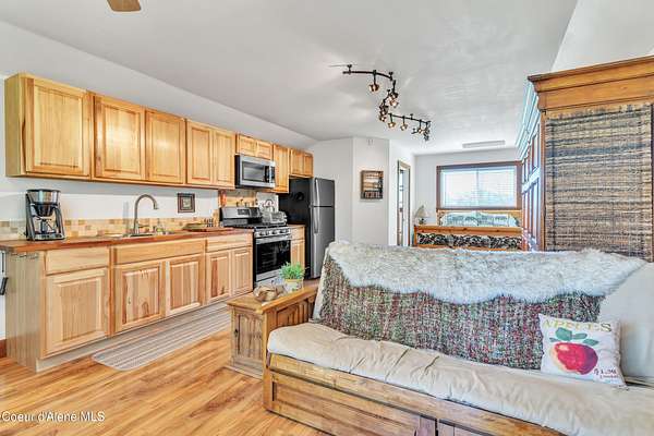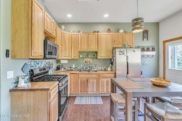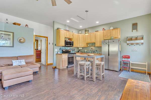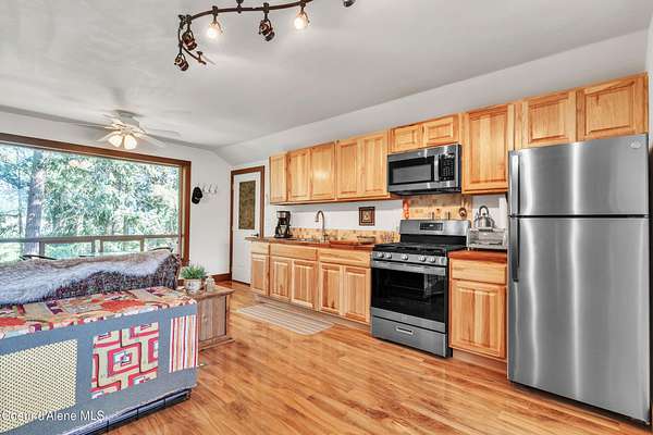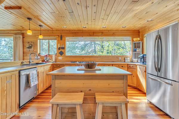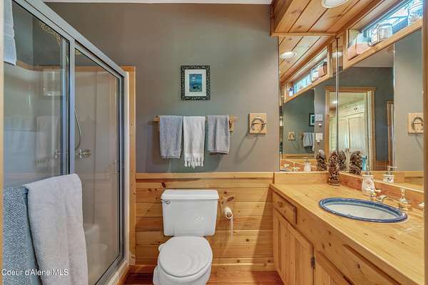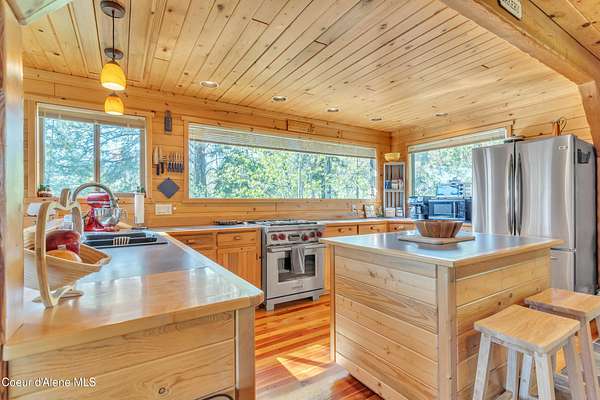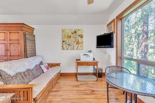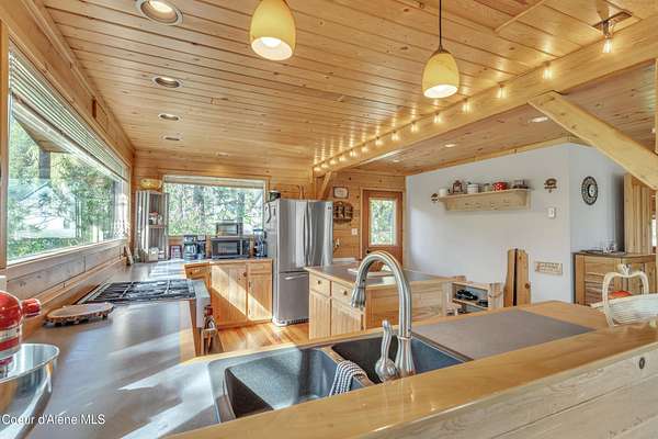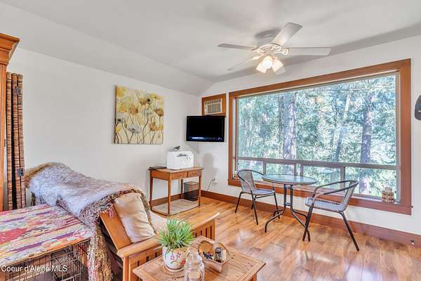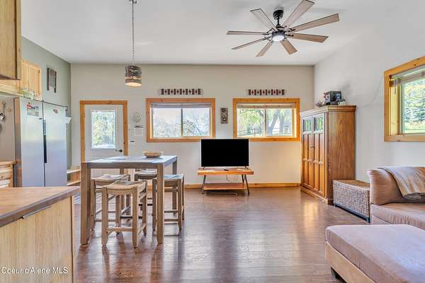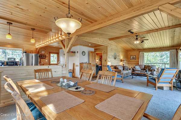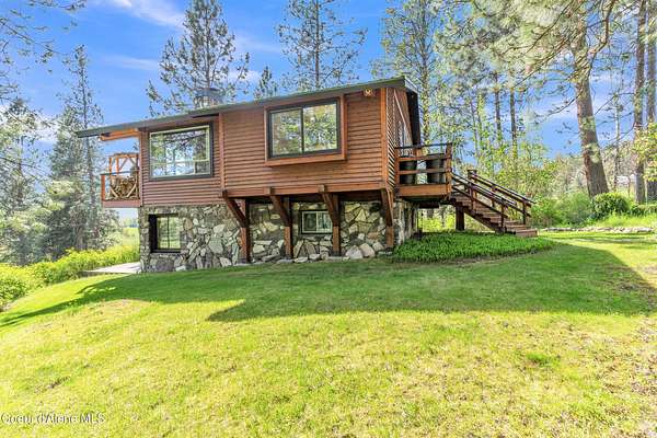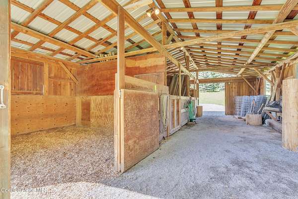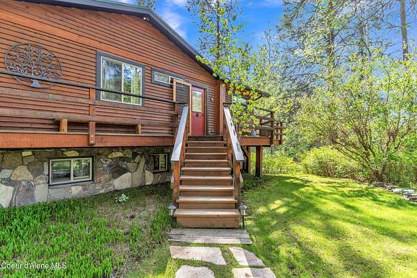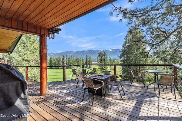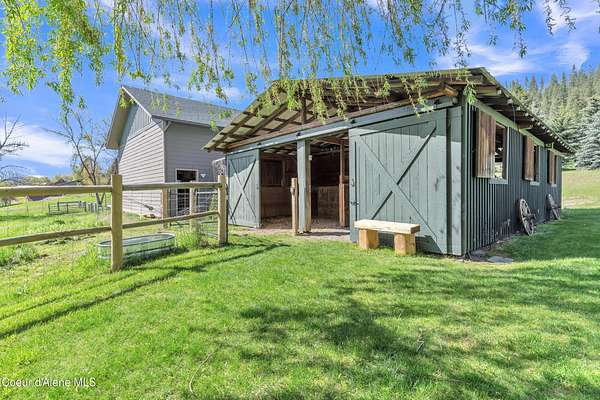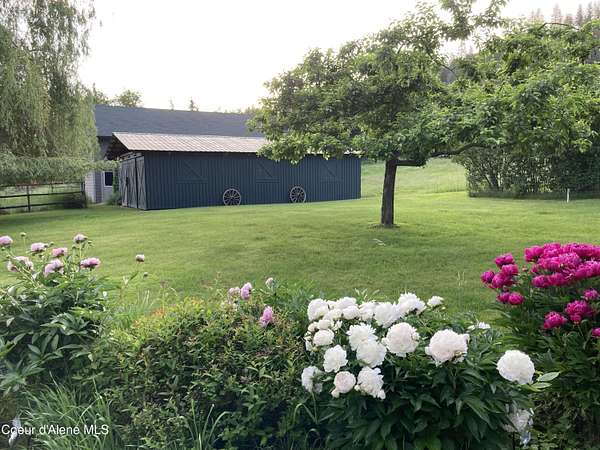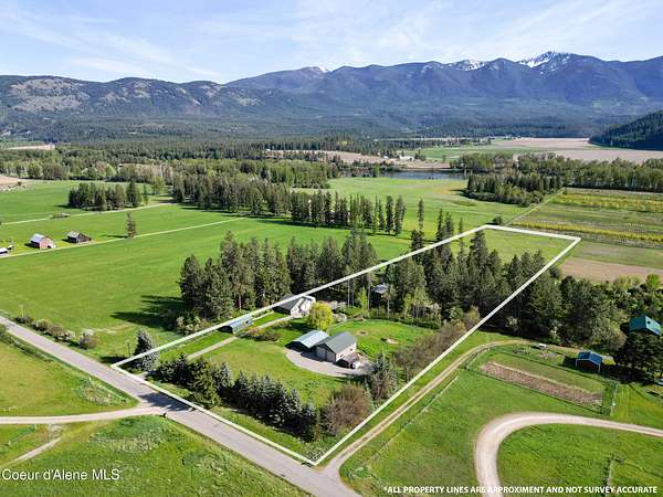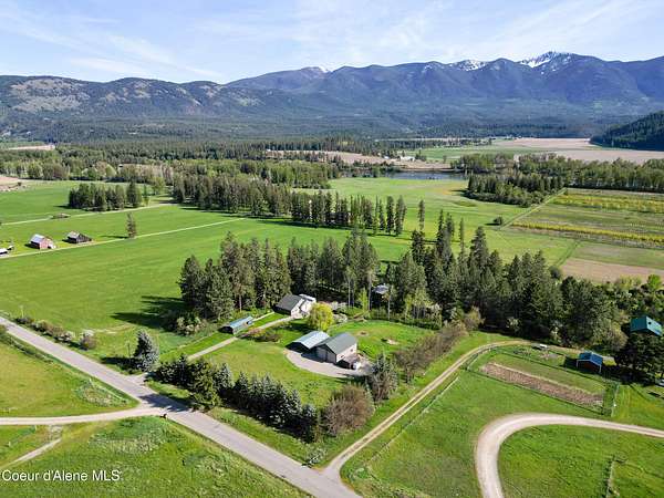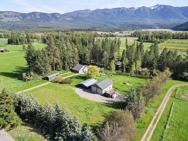 This North Idaho retreat has it all. Two homes, studio, shop, greenhouse, barns, full RV hookups, new fencing, income and more... A Once-in-a-Lifetime North Idaho Retreat. Multi-generational living or income producing, endless possibilities..... The main cabin has been described as 'Heaven on earth,' with custom rustic accents throughout and surround-sound nature. Extensive windows overlook 8 acres of variety, from landscaped gardens to lush pastures, to pine covered knolls. Guest home is adjacent to a finished garage, with a separate upstairs studio accessed by side entrance. Turnkey options available. Perched on one of the most desirable south-facing locations near the river and just 4 miles from the charming town of Bonners Ferry. Breathtaking views, serene privacy, and all the essentials of a dream homestead or income-generating retreat... Main cabin features 2-bedrooms, 2 family rooms, 2-bathrooms, and spacious outdoor living areas. Kitchen has custom cabinets with pull-out drawers, and guests can eat indoors or out on expansive decks. The second family room downstairs opens onto a patio with chlorine-free hot tub with mountain views. This one-of-a kind custom home is warm and inviting, with options to heat via wood stove, propane, or electricwhichever suits your lifestyle. Guest home features a 1-bedroom, 1-bathroom "cottage" downstairs with a huge soaker tub. Above the garage, with side entrance, is a fully separate ADU studio, complete with a kitchenette and 3/4 bath. Speed Queen laundry machines in garage, in addition to the laundry room in main cabin. All living areas have been enjoyed as short-term rentals with great reviews. Garage also features extra storage upstairs and down, and a laundry area. Outside, the property truly shines: lush landscaped grounds featuring rock wall lined perennial gardens and vegetable gardens, pear, cherry, and apple trees. 4 newly fenced pastures ready for livestock; great soil and cross fences for all your homesteading needs. A 30x40 shop (built in 2011) featuring 2 RV bay doors, an insulated office, and loft storage. Large greenhouse/garden center and a 3-stall equestrian barn. Relaxing outdoor amenities including a patio with hot tub, fire pit, BBQ grill, and picnic area....