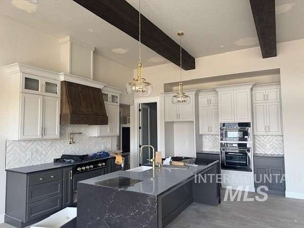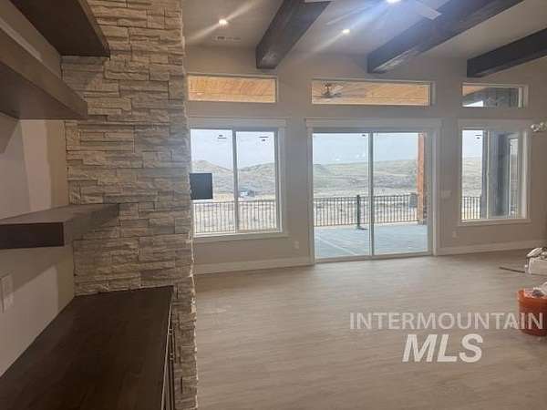 Home is not quite finished yet but come take a look! This stand out home on 4+ acres has so much detail inside & out. On the main level there are 4 bedrooms, 2.5 bathrooms, fully rocked fireplace with floating shelves & cabinets, wood beams in the vaulted ceiling, atrium windows, & a glass door to the large covered deck. The kitchen has a waterfall style granite island, pot filler over the gas range, and a huge butlers pantry. This home is so classy with champagne bronze fixtures through out, LVP in main areas and tile bathrooms with walk in shower in primary. On the lower level there are two more bedrooms, full bathroom, large storage room and a family room with stamped concrete floors and a walk out door to the oversized concrete patio and a firepit a few steps away. Plenty of room to add a shop.