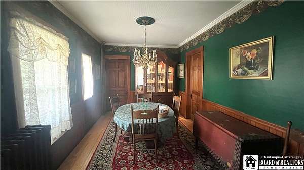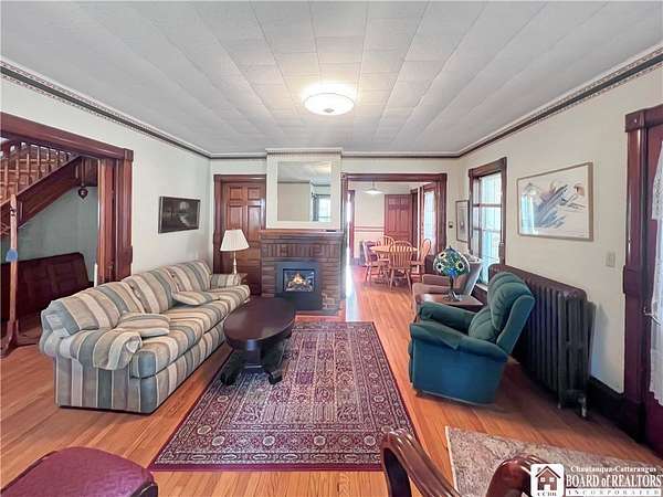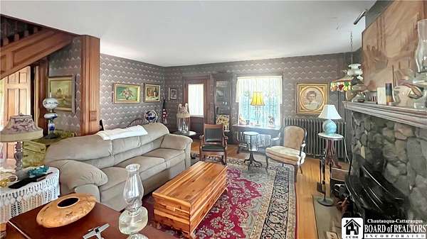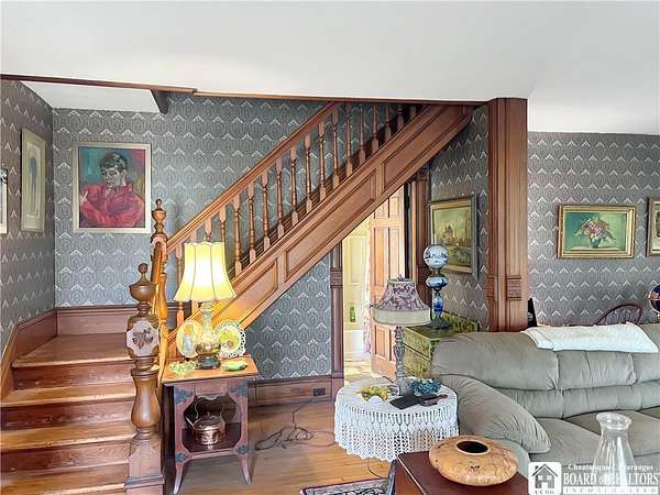 Step into a truly unique opportunity with this expansive 5,000+ square foot home, offering eight bedrooms and five bathrooms-perfect for those seeking space, character, and potential. Rich in charm, the property showcases stunning natural and ornate woodwork throughout, just waiting to be restored to its full beauty with a little TLC. Enjoy peaceful living in a tranquil setting, complete with lake right with dock, for added lifestyle appeal. The home features a large wraparound porch-ideal for relaxing or entertaining-along with an in-law suite that includes its own private entrance, offering flexibility for extended family or guests. Additional highlights include a two-car garage and a spacious exterior barn with multiple garage doors, perfect for storage, hobbies, or workshop use. The home is vinyl sided and offers a newer roof and vinyl windows, providing a solid foundation for your vision. This property sits on over 2.5 acres, offering space and privacy. With its size, character, and incredible potential, this property is a rare find ready to be brought back to life.