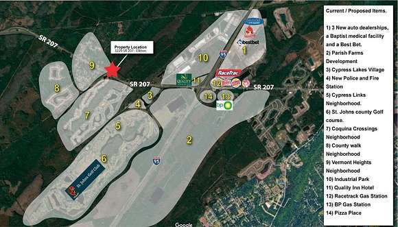Unlock A Rare Chance To Own 2.07 Acres Of Prime Pud-zoned Land In One Of North Florida's Fastest-growing Corridors. Situated On State Hwy 207,Just 1 Mile West Of I-95,This Property Is Nestled Among Thriving Neighborhoods And Poised For Exponential Growth. The Surrounding Area Is Buzzing With Development: New Auto Dealerships,A Best Bet Casino,A Modern Police And Fire Station,A Revamped Golf Course,A County Water Plant,Industrial Projects,A 12,000 Sq Ft Rum Distillery,And A New Publix Shopping Center--all Within A Few Miles. Plus,The Colossal 2,800-acre Parrish Farms Mixed-use Development Sits Across Hwy 207,Amplifying The Potential. Zoned For Neighborhood Commercial Use,This Site Is Ideal For A Restaurant,Retail Space,Medical Facility,Or More. The Property Does Have An 900 Sq.ft. Existing Home That Was Built In 2012 And Totally Renovated Inside That Could Serve As An Office Or Could Be Removed Completely,But The Value Is In The Property Itself.,With 360 Feet Of Hwy 207 Frontage And Already-impressive Traffic Counts,This Location Offers Unmatched Visibility In An Area Just Hitting Its Stride. Don't Miss Out--this Is A Gateway To North Florida's Booming Future.