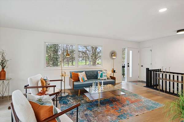 BACK ON MARKET due to buyer not being able to sell their home - no issue with home! This home sits on 3.8 acres in a country setting yet is close to shopping, restaurants, schools & M89! This home has been restored to it's former glory with a little MCM flair! It has a new kitchen with shaker cabinets, tumbled backsplash and new stainless appliances! The main floor living has new paint, large windows, and a welcoming vibe! Open to the dining area, it is a perfect flow! 2 bedrooms and full bath round out this level. The lower level is a walk out with second living room, wet bar/gaming area, a second XL primary and full bath. The updated laundry room/utility room has a let out as well! The side fenced in yard is perfect for Rover. Oh you need a barn? This property has that too!