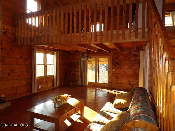 Looking for your paradise? This may be it! 161 beautiful acres in the mountains of East Tennessee and Southwest Virginia!! Approximately 4 miles from LMU's Virginia Veterinary School Farm. Comes complete with a 2100 square foot Old Virginia Log Home, 3 barns, and implement shed. Land is rolling and a good mix of pasture, hay fields, and woods. Pond on the farm attracts wildlife including deer, turkeys, squirrels, rabbits, etc. Approximately 141 ac in Tennessee and 20 ac in Virginia according to PVA information. Hunt seasons in both states. Home is a story and a half, solid log with living, dining, kitchen, 3 bedrooms, 2 baths, and a loft. Stone fireplace soars to the second floor ceiling. Wood floors and ceiling, stainless steel appliances, covered front porch, covered rear patio, and more. Lots of room for hunting, livestock, gardens, house sites, etc. Acreage is not guaranteed. Only 45 acres have been surveyed. Owner/Agent