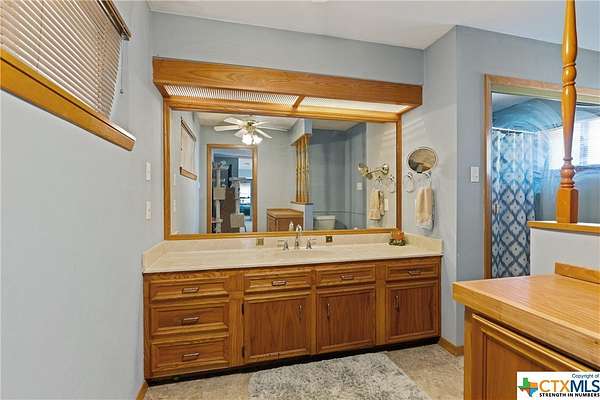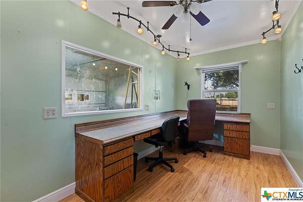 - Built In Features, Ceiling Fans, Custom Cabinets, His And Hers Closets, Home Office, Kitchen Dining Combo, Multiple Closets, Multiple Living Areas, Pantry, Track Lighting, Tub Shower, Vanity, Window Treatments