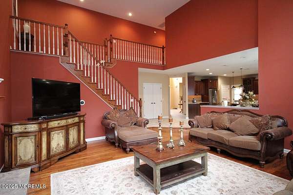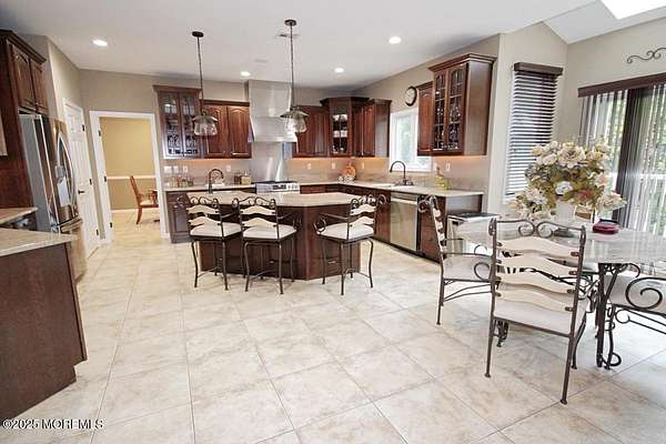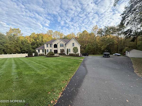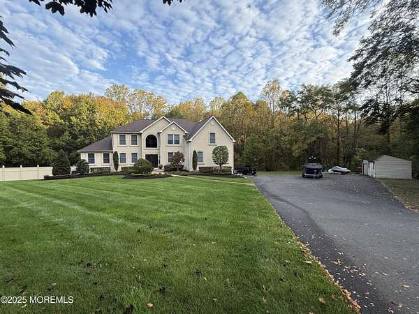 Custom 4 bedroom 4.5 Bath Luxury Home situated on 2 acres in Desirable Freehold Township . This 4,113 sq. ft Colonial has it all. Cherry wood kitchen cabinetry with center island and stainless appliances Spacious bedrooms, 2 Story Family room with wood burning fireplace, Conservatory, private office, 6 zone radiant heat, 2 zone central Air conditioning, Full finished 1,900 plus sq. ft walk out basement with theater room, gym, full bath, and extra kitchen for entertaining. The Country club backyard has stamped concrete, in ground pool , outdoor fireplace, Bar , sitting area, and surrounded by Orchards and preserved land. The driveway holds 15 plus cars and the garage was constructed with high ceilings for a car collector or sportsman.