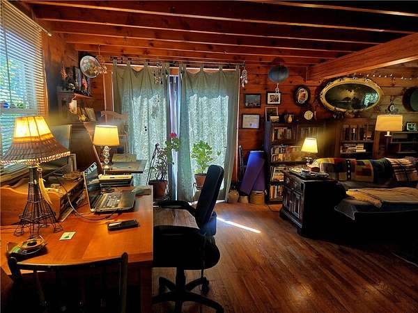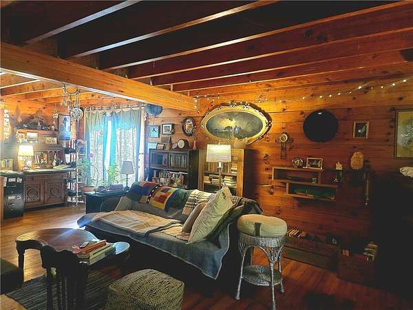 Sweet Serenity. Precious Log home with a different layout that will appeal to your creative side. Four nice sized bedrooms, 1.5 baths, large lodge like Living room straight out of an ADK Mountains lodge. Good flow, has great interior vibes, but could be even more with your plans. Spacious barn with ample shop area, or room for larger pets. Beautiful Palmer Creek runs on the property, making it a haven for wildflowers and birds.Private setting. Newer roof, new fuel tanks, new cold water tank, Bridge has had new planks installed, Fruit trees ,Rhubarb, berries are present. High Speed internet is on site. Back porch has been rebuilt, new well pump recently. Its a magical place with 10 acres to create your own private space. Make this your new home or just keep it for weekends.