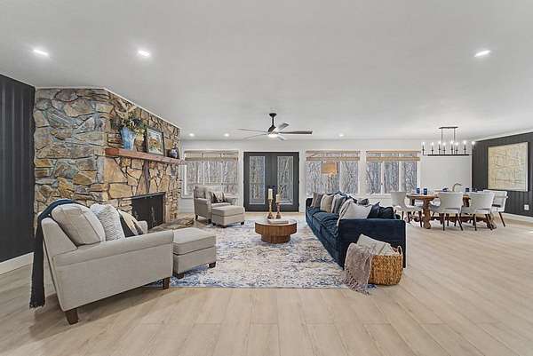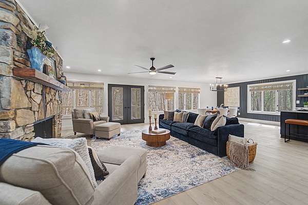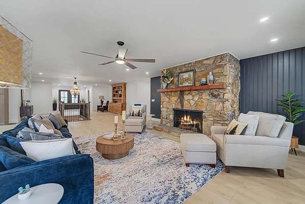 Welcome to a home where space, privacy, and intentional design come together. Situated on 4.5 unrestricted acres, this freshly renovated 4,300 sq ft property offers a rare blend of usable land, wooded surroundings, and a setting that feels private yet highly convenient. Featuring an open floor plan with true main-level living, the home is anchored by a warm wood-burning fireplace. Designed for both everyday living and entertaining, the kitchen serves as the heart of the home with a hidden butler's pantry complete with a full sink and additional oven. The primary suite offers a private retreat with a spa-like bath, including a large walk-in shower, soaking tub, dual vanities, and a spacious closet. The lower level expands your living space with a recreation room, full bath, and bar area ideal for gatherings or a private escape. An additional 1,500+ sq ft of unfinished basement space provides ample storage or great workshop. Enjoy peaceful mornings on the front porch or unwind on the fully screened back porch. Conveniently located less than 10 minutes from downtown Franklin, this property offers the best of privacy and accessibility.