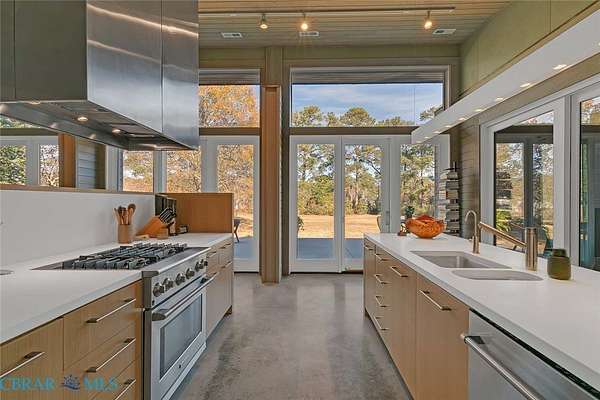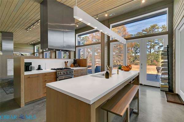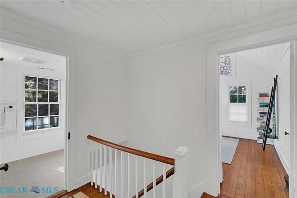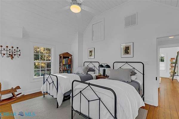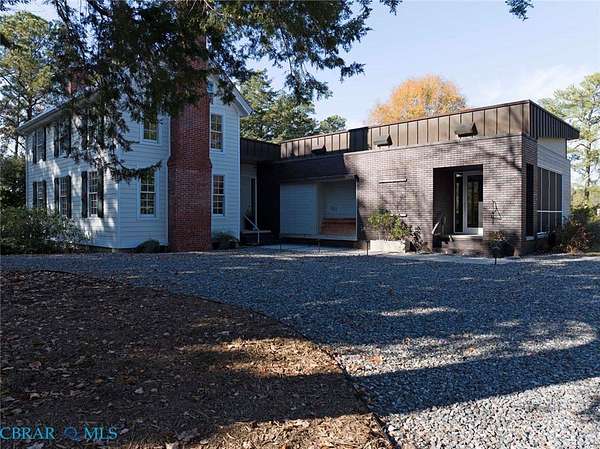 Set on a secluded point along Horn Harbor, this remarkable property offers easy access to the Chesapeake Bay and an unparalleled waterfront setting affording 270 degree views. Originally built in 1880, the home has been completely transformed with an extraordinary expansion that brings natural light and panoramic views into the gourmet kitchen, open dining area, and elegant living room with a fireplace. A spacious terrace extends the living space outdoors towards the water. The main-level layout includes the primary suite, a den/office, and all essential rooms providing convenient everyday living. Upstairs, you'll find two airy bedrooms with soaring ceilings and a full bath. A standout feature of the property is the 1,600 sq ft multi-purpose garage, designed to accommodate multiple vehicles, a workshop, studio space, and storage areas. Also included is a 2.45-acre waterfront parcel, providing added privacy, with approvals for a septic system and well ideal for creating a second homesite. Historic outbuildings include a small 1822 shed, a separate garden shed for tools and equipment, and an enclosed potting area. Boaters will appreciate two piers, a boat lift, water depth exceeding 6 feet, and ready access to Horn Harbor Marina.
