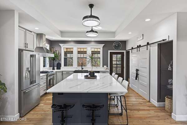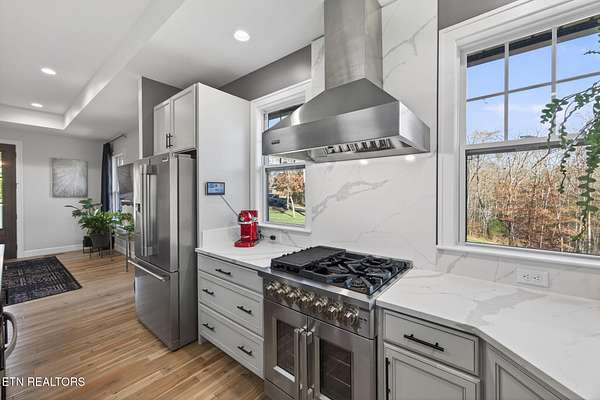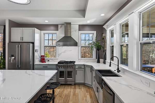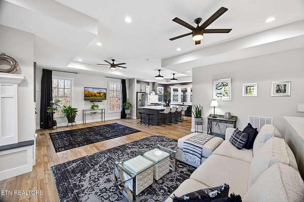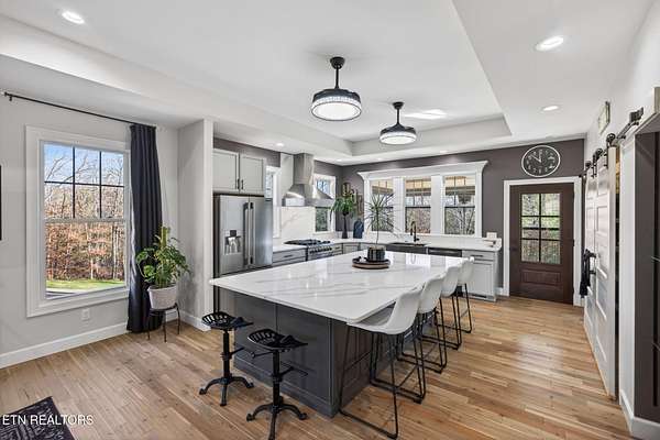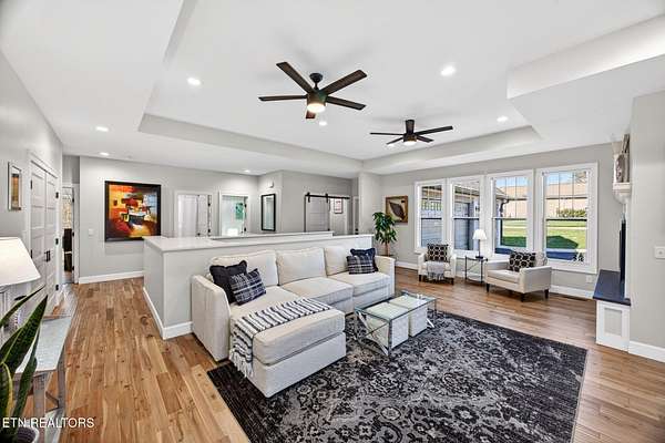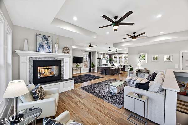 LUXURY DESIGNED RIVERFRONT HOME WITH A CHEF'S KITCHEN AND CUSTOM DECKS ON OBED RIVER! Situated in one of Crossville's most desired neighborhoods within city limits, this exquisite brick residence delivers privacy on an impressive lot just under 2 acres featuring 325 feet of pristine Obed River frontage. Enjoy the best of both worlds: a secluded retreat just moments from shops, restaurants, schools, parks, the hospital, and downtown. Spanning 2,804 sq ft, this stunning 5 bedroom, 3 bathroom home is an entertainer's dream. The outdoor space is truly world-class, defined by custom, architecturally designed upper and lower decks (over $100K invested) installed by Jeff Woods Construction. Experience seamless indoor and outdoor living with remote-controlled retractable screens, ensuring year-round riverfront enjoyment regardless of the weather. The kitchen is a statement of modern luxury with its quartz countertops, retractable fan lighting, stainless steel appliances including a brand new Forno gas range (April 2025) and a massive 60 sq ft island (10' x 6') - perfect for hosting - complemented by a generous pantry. In the living room cozy up to the double-sided gas fireplace. The main level offers the primary suite with its own bathroom and walk-in closet and another full bathroom and two guestrooms. On the lower level enjoy a spacious second living area or game room complete with mini bar area. On this level is a full bathroom and 2 more rooms that can be used as bedrooms, an office, or craft room. Unmatched flexibility is provided by the rare 5 car garage with 3 bays on main level (garage is 34' x 25') and 2 more bays on the lower level (garage is 23' x 24') with a U-shaped refinished driveway for extra convenience. Thoughtful details include a new QA-Deluxe 5500 energy efficient whole house fan (2025), tankless water heater, central vacuum, security system, and new hardwood flooring in the main floor bedrooms. Here is your coveted chance to own a high-end designed riverfront property offering peaceful luxury and unparalleled convenience within the beautiful city limits of Crossville, TN. Buyer to verify all information before making an informed offer.