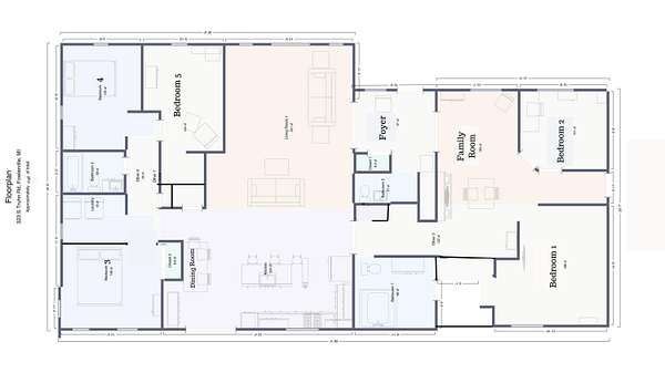 - Basement, Bathroom x 3, Bedroom x 5, Family Room, Laundry Room x 2