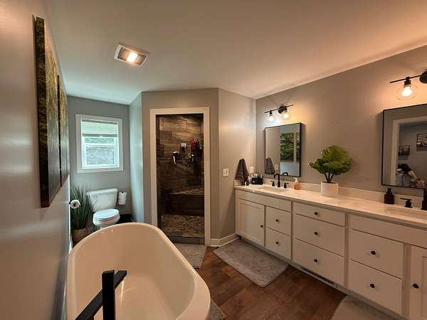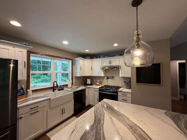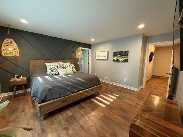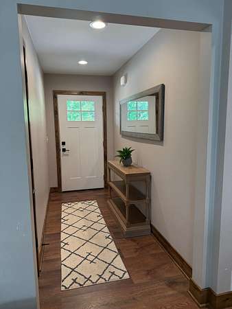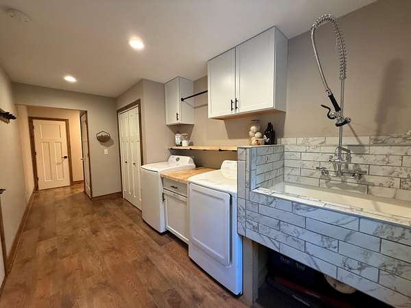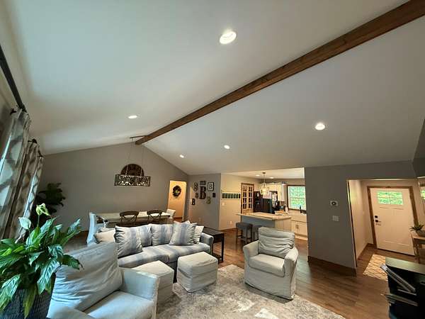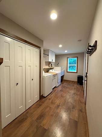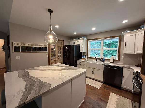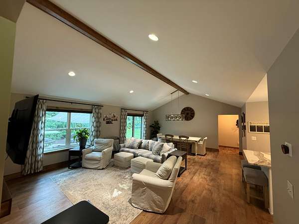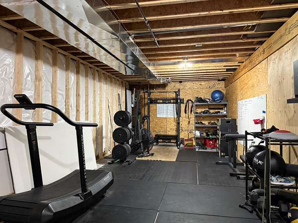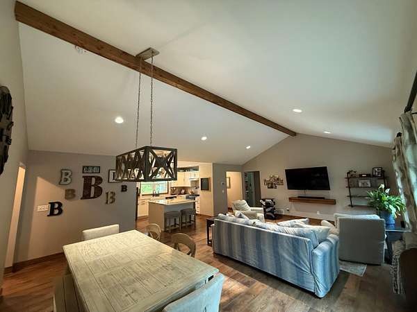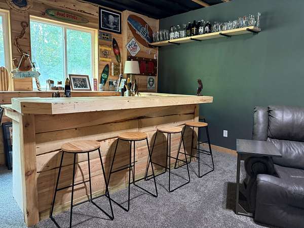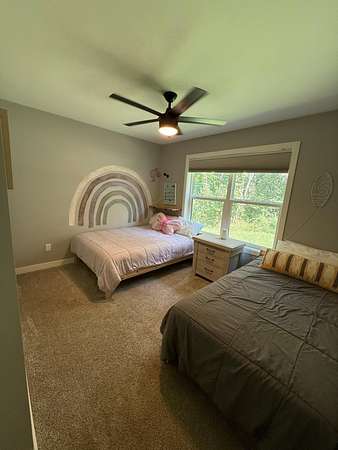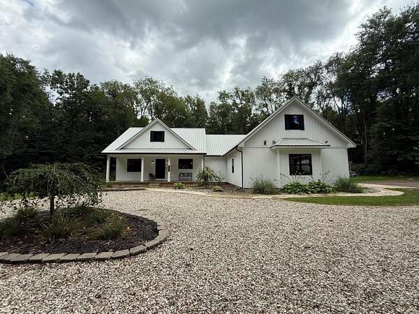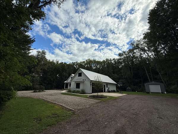 Welcome to this beautifully designed 3 bedroom, 2.5 bathroom home, built in 2019 and nestled on 11 scenic acres complete with private trails-perfect for outdoor enthusiasts, hobby farmers, or hunters. Whether you're entertaining indoors or enjoying nature out back, this home checks every box. Step inside to find a bright and open floor plan featuring a vaulted ceiling in the living room and high-end woodgrain laminate flooring throughout. The kitchen, butler pantry and bathrooms are finished with elegant quartz countertops, custom cabinetry, and sleek tile flooring in the two bathrooms. The spacious master suite offers a luxurious retreat with a large walk-in closet and a beautifully designed master bathroom. The finished basement offers a fully equipped gym space, a cozy living area, a custom-built bar, ample storage, a bedroom with egress window, and a bathroom-just needs a pump and piping for final hookup. This is a must-see property! Seller is related to licensed realtor.