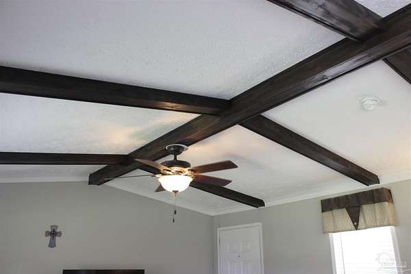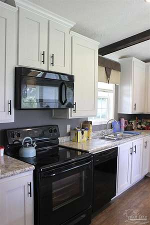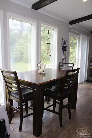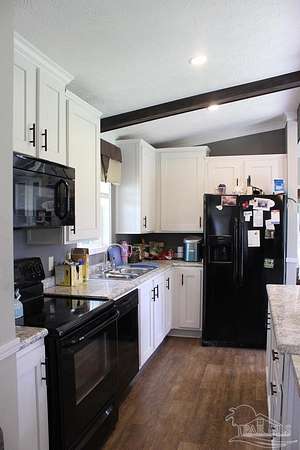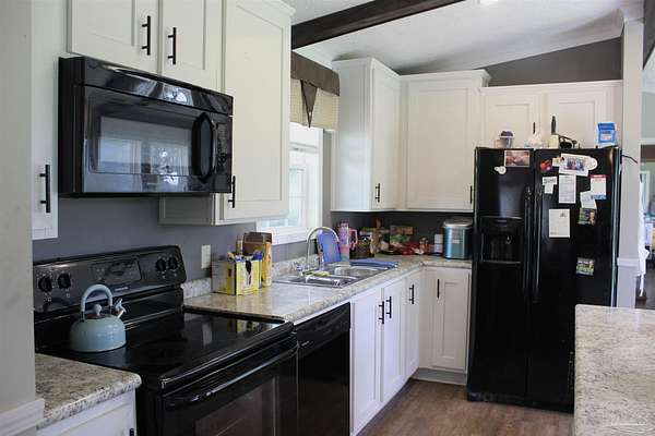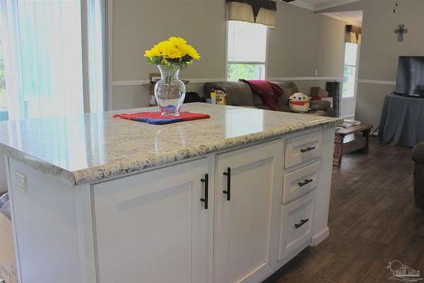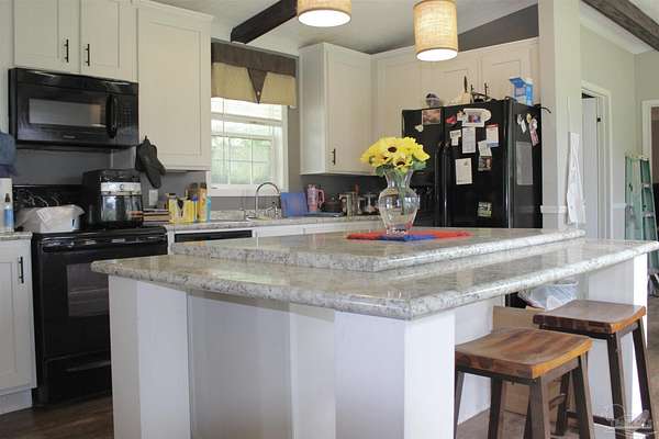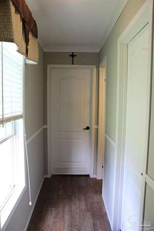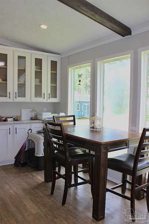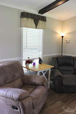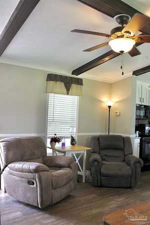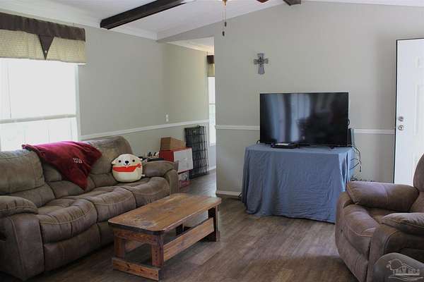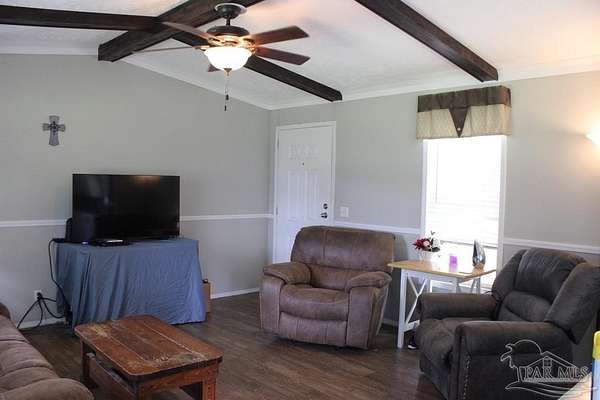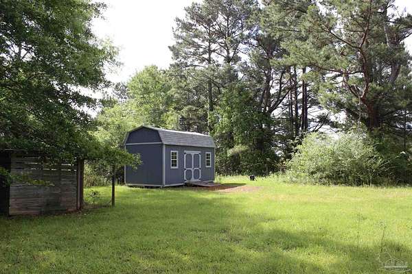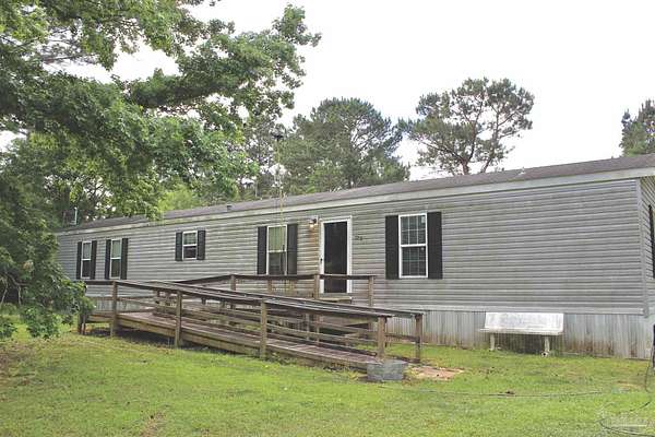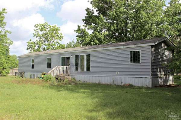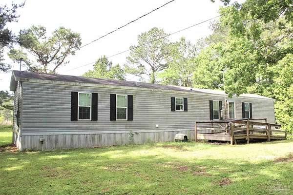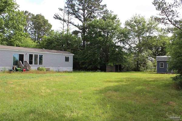 Beautiful country property with almost 3 1/2 acres for plenty of elbow room and a quaint 3 bedroom, 2 bath 2016 Cavalier mobile home situated in the front portion of the parcel. The home is a split plan with a breezy, open space for the living room accented by attractive ceiling beams plus the kitchen area in the middle. A large island with decorative pendant lights, built in microwave, smooth top stove, dishwasher, and fridge are featured. In addition, a very functional dining area located near the back slider door includes a built in cabinet/wall hutch for displaying or storing items. The primary suite is roomy and the bath features a large soaking tub and separate shower. Outside, the unique shape of the acreage provides ample space for the large, newer shed plus a chicken coop that, with a bit of TLC, can provide a home for all "the girls" and farm fresh eggs to save you money at the grocery. A pecan tree and pear tree add to the savings! You also have ample space for your RV, boat, ATV and more. The rural mixed-use zoning allows a maximum density of two dwelling units per acre so, check with the county to confirm, but you should be able to add a driveway to the back of the property to build your dream home (while living in the mobile home) and then rent the mobile home out for added income or for extra family members. The options are endless! Mason Road is lined with beautifully maintained homes and is centrally located in between Pace/Molino/Cantonment, Atmore, and Century/Flomaton where you can enjoy shopping/dining, casino activities, or just quiet country living...your choice!