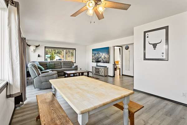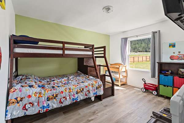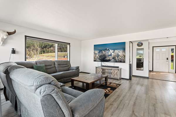 Welcome to 4 bedrooms, 3 baths, and 15 irrigated acres in St. Ignatius-where the Mission Mountains are your backdrop and FIIP has already done the heavy lifting with a new headgate structure, sump, and buried mainline with risers. Perfect for pasture, hay, or hobby farming. The entire upper level is a master retreat, complete with a remodeled bath, soaking tub, and custom concrete walk-in shower. The etched mural captures the actual view from the home, turning the space into something you'll never want to leave. On the main floor, two more bedrooms, a full bath, and a smartly designed kitchen with soft-close cabinets, concrete countertops, and double ovens make daily life both functional and comfortable. Updated flooring and fresh paint give the home a crisp, modern feel. The basement connects easily from the garage-ideal for multigenerational living, long-term guests, or a separate-use space. A bedroom, full bath, and cozy family room with a wood stove make it move-in ready, and with proper permitting, it could even serve as a daycare or home-based business. Outside, the privacy-fenced front yard, back deck, and sweeping Mission Mountain views set the scene for quiet mornings and stunning sunsets. Just minutes from Mission General Market, with Missoula, Flathead Lake, and ski areas a short drive away.