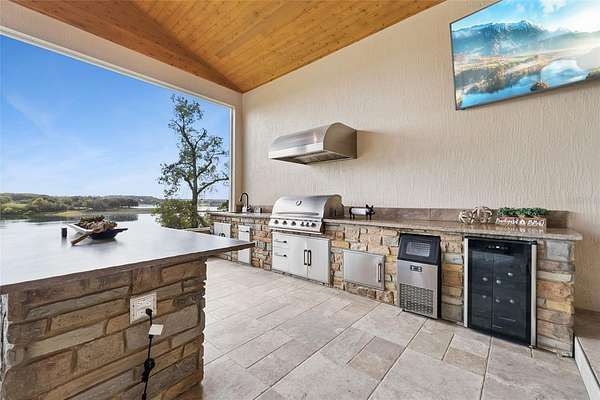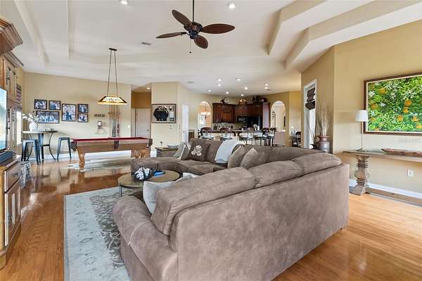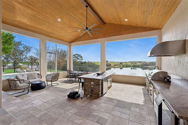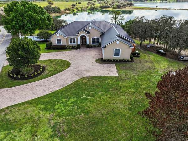 EXPERIENCE THE PINNACLE OF LAKESIDE LIVING on this sprawling 2.34-acre estate overlooking the pristine waters of Blue Lake. This custom-built masterpiece spans 3,152 sq. ft. of meticulously designed living space, where every detail, from the intricate millwork to the soaring tray ceilings, whispers luxury. The heart of the home is an expansive open-concept family room that flows effortlessly into a chef’s kitchen. Outfitted with handsome wood cabinetry and a massive social island, the kitchen serves as a hub for both daily life and grand entertaining. Throughout the home, gorgeous wood flooring is complemented by the earthy elegance of travertine tile in all wet areas. Formal living room and formal dining room link comfortably within the open concept living space. The owners’ retreat is an elegant sanctuary featuring private lanai access, custom-shelved walk-in closets and a spa-like en suite with a soaking tub, walk-in shower and granite-topped split vanities. The split-plan gives privacy where the second bedroom enjoys its own full bath, while the third bedroom is currently a professional home office offering convenient access to a pool-side bathroom. The real showstopper of this home is the massive lanai with a cathedral cedar ceiling, an impressive outdoor kitchen with and a sparkling pool overlooking the lake. It’s not just a home; it’s a vacation you never have to leave! This fabulous home is ideal for the family who loves lakefront living and those who enjoy entertaining. Blue Lake is a 105 acre lake with a mean depth of 20 ft./max depth of 66 ft. Located just a short distance to US Hwy 27 & SR-Hwy 60, near all shopping, Lake Wales or Winter Haven, a great Central Florida location! Call today this is a Must See!