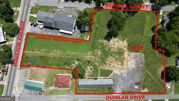 Est $1,555/moBUILDING with Commercial acreage to grow & (3) separate road frontages. Close to I-75 access. Property access on Quinlan Drive with 359' of road frontage. Other road frontages are 130' on Houston Avenue and 226' on Bennell Street. Road frontages dimensions are approximate. Four-sided brick building with 3,451 sq. ft. has several office-sized rooms and a large hall area with (2) half baths. A cleared site is present where a church used to be. Priced to sell!