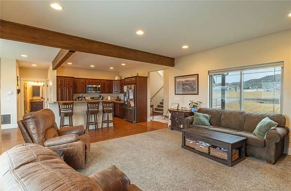 Experience the very best of the Helena Valley from this stunning Panoramic Meadows home, where nearly every window frames a picture-perfect view of Lake Helena and the surrounding mountains. Offering 3-bedrooms, 3 baths, and a bonus room with an additional non-conforming bedroom attached on a landscaped 2.01-acre parcel just minutes from the Causeway. The kitchen includes stainless steel appliances complete with a gas range. Main floor features a living room, a bedroom, and 3/4 bathroom. On the second floor is a bonus room, two bedrooms, and a full bathroom. The master includes a walk-in closet, a jet tub, and a double head walk-in tile shower. The property includes an attached 5 car heated garage, that is 3 stalls wide two which are double-deep, it's adream for a car enthusiast, woodworkers, or anyone needing extra storage. Home is heated by a heat pump and a propane furnace and cooled down by central air conditioning. Updates since house was last sold include new Renewal by Anderson Windows in 2023. Cordless blinds. New heat pump in 2021. Fencing the backyard, Trimlight permanent outdoor lighting, shelves and workbench in the garage, shed placed in backyard, trees planted (including some apple). Cement parking pad and partial driveway proud. Underground Sprinkler improvements. Updated HVAC system and new water heater. Installed cabinet and shelves in the laundry room.