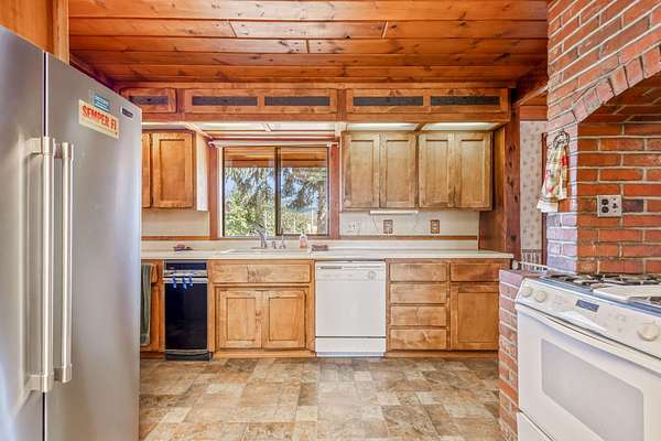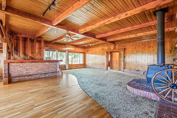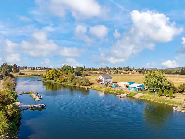 Est $2,362/moRare Williamson River waterfront property with approx. 3.2 acres just minutes from Upper Klamath Lake. This unique opportunity features a home filled with exposed beams and beautiful wood accents throughout, creating a warm and rustic feel. Two barns offer versatile use for storage, hobbies, or animals. The setting provides a peaceful retreat with direct river frontage, open space, and endless possibilities for outdoor recreation. Whether you're seeking a private getaway, a lifestyle property, or an investor opportunity, this acreage delivers natural beauty and potential in equal measure. Sold as is.