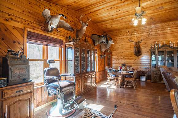 Boyd Creek Hunting Club is an outdoor paradise, surrounded by over 32,000 acres of Conservation Land, offering endless opportunities for exploration. The property features alfalfa and clover fields, persimmon and fruit trees, and Boyd's Creek, providing year-round water. The mix of timber and open fields creates a haven for deer and turkey, with several strategically placed deer stands ensuring prime hunting. The property includes a 6-bed, 3.5-bath lodge on a hilltop, offering panoramic views from the covered top deck. Additional lodging is available with RV hookups and septic at the bottom of the hill. Multiple outbuildings provide storage, and additional equipment helps maintain the land. The property is just half a mile from the Current River, known for fishing and floating. Boyd Creek Hunting Club is the ideal retreat for hunting, fishing, or simply relaxing in nature. With its diverse landscape and amenities, it's a rare gem for those seeking a true outdoor escape.