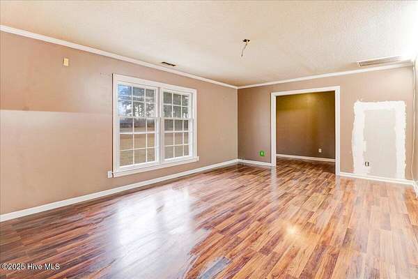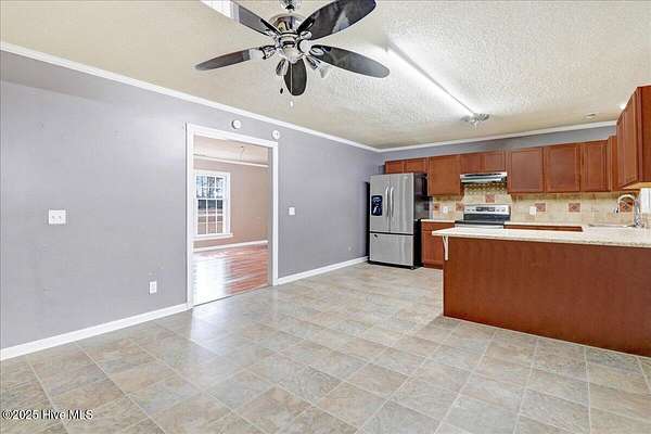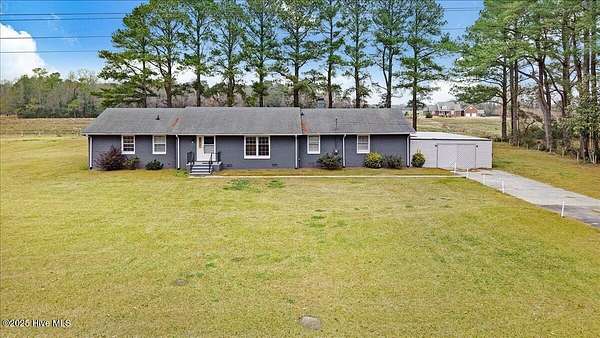 Located on Hwy 58 N in Trenton, this single-story brick ranch offers quiet country living on an expansive 1.75-acre lot. With over 1,600 heated square feet, this 3-bedroom, 2-bath home features a comfortable layout where the living room flows seamlessly into a spacious kitchen complete with a cozy fireplace. The primary suite includes a master bathroom with a whirlpool tub and a walk-in shower. Additional spaces-such as a game room, rec room, and workshop-provide even more versatility but are not included in the heated square footage. Conveniently located just minutes from downtown Trenton, approximately 20 minutes from Kinston, and less than 30 minutes from New Bern, this property combines rural charm with easy access to nearby towns and amenities.