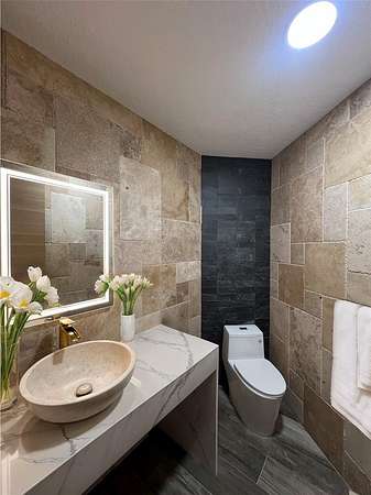 - High Ceilings, Kitchen/Family Room Combo, Living Room/Dining Room Combo, Open Floorplan, Stone Counters
