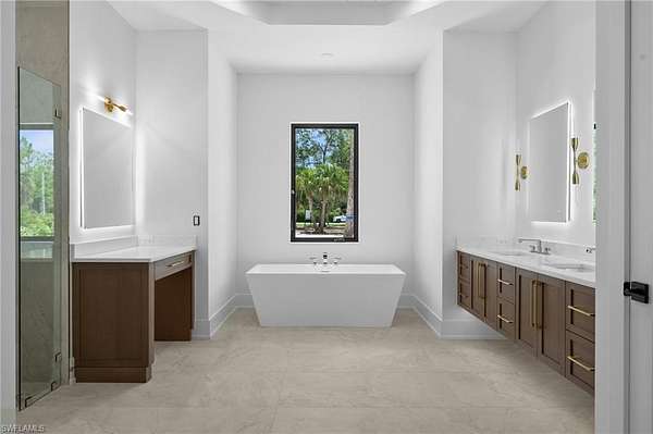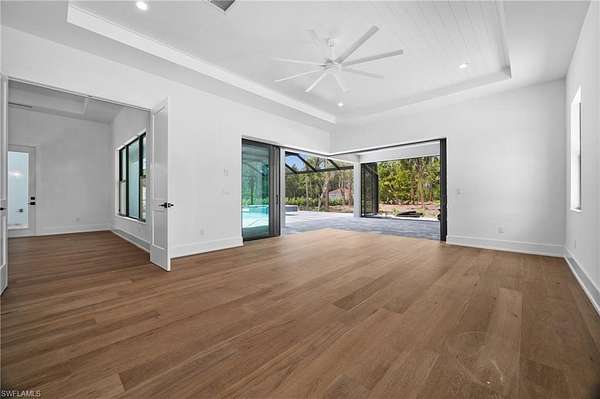 STUNNING NEW CONSTRUCTION RENTAL AVAILABLE! Pet allowed with approval! 6 month minimum - (181 days) or Annual. Lease to own option available for qualified buyers. Luxury, stunning design, high-end finishes, quality craftsmanship, and modern comforts combine in this beautiful new construction home which is conveniently located just a 15 minute drive from downtown's fine dining, shopping and beaches, just 2 minutes to I-75! Set on 2.27 acres, no expense has been spared in this 4 bed + den/5 bath home built by Naples Gulfstream Homes, a highly reputable and well-known local builder. Now completed, the entire home with just under 4,000 sq. ft. of living space was built to be hurricane-proof and includes a concrete safe room. Custom in-ground pool & spa with paver lanai was designed with entertaining and relaxing in mind - plenty of room to entertain or just enjoy the sun with a cocktail. Tesoro Naturalux oak flooring throughout living areas and bedrooms, sleek and sturdy tile flooring in all baths and laundry room. Gourmet kitchen has top model stainless steel Bosch appliances including an induction cooktop, accented by white upper/lower cabinetry and contrasting warm brown-toned oak island cabinetry, stunning Nuvalato Pompeii quartz countertops, including a large island with seating. All baths have floating vanities and wall-mounted commodes. Primary bath has stone shower flooring, tile flooring and walls, and Pompeii quartz countertops. Additional baths have white cabinetry, Pompeii quartz countertops, each with unique tile walls and flooring. Laundry room has a stainless steel sink, white cabinetry, Pompeii quartz countertops, and LG washer & dryer. Located on a very quiet dead-end street with Canal and boat ramp for the avid kayaker. Other comfort features include a whole house reverse osmosis system.
