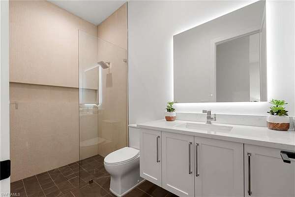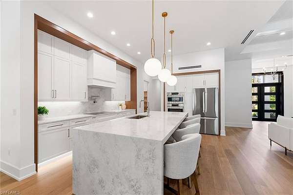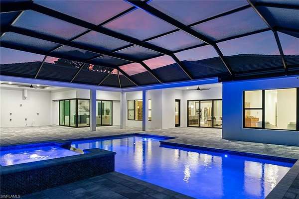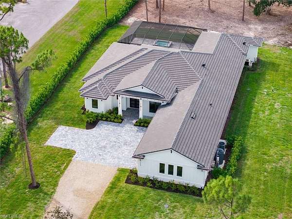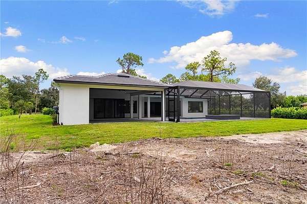 STUNNING NEW CONSTRUCTION RENTAL AVAILABLE! Pet allowed with approval! 6 month minimum - (181 days) or Annual. Lease to own option available for qualified buyers. Luxury, stunning design, high-end finishes, quality craftsmanship, and modern comforts combine in this beautiful new construction home which is conveniently located just a 15 minute drive from downtown's fine dining, shopping and beaches, just 2 minutes to I-75! Set on 2.27 acres, no expense has been spared in this 4 bed + den/5 bath home built by Naples Gulfstream Homes, a highly reputable and well-known local builder. Now completed, the entire home with just under 4,000 sq. ft. of living space was built to be hurricane-proof and includes a concrete safe room. Custom in-ground pool & spa with paver lanai was designed with entertaining and relaxing in mind - plenty of room to entertain or just enjoy the sun with a cocktail. Tesoro Naturalux oak flooring throughout living areas and bedrooms, sleek and sturdy tile flooring in all baths and laundry room. Gourmet kitchen has top model stainless steel Bosch appliances including an induction cooktop, accented by white upper/lower cabinetry and contrasting warm brown-toned oak island cabinetry, stunning Nuvalato Pompeii quartz countertops, including a large island with seating. All baths have floating vanities and wall-mounted commodes. Primary bath has stone shower flooring, tile flooring and walls, and Pompeii quartz countertops. Additional baths have white cabinetry, Pompeii quartz countertops, each with unique tile walls and flooring. Laundry room has a stainless steel sink, white cabinetry, Pompeii quartz countertops, and LG washer & dryer. Located on a very quiet dead-end street with Canal and boat ramp for the avid kayaker. Other comfort features include a whole house reverse osmosis system.