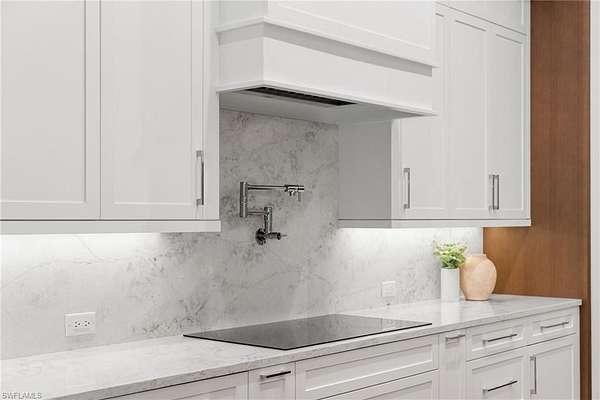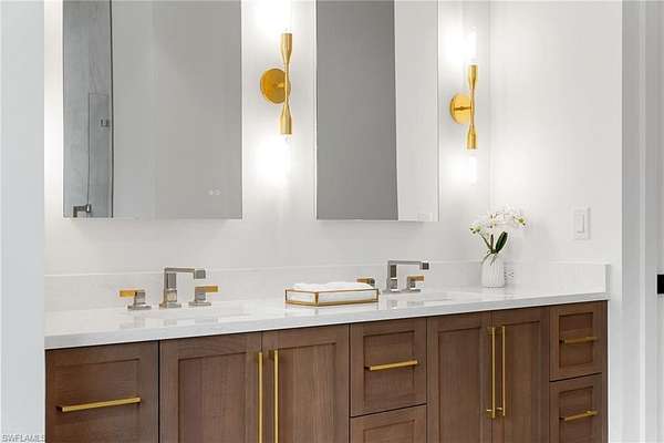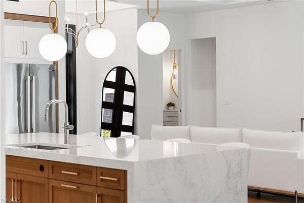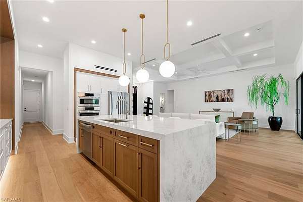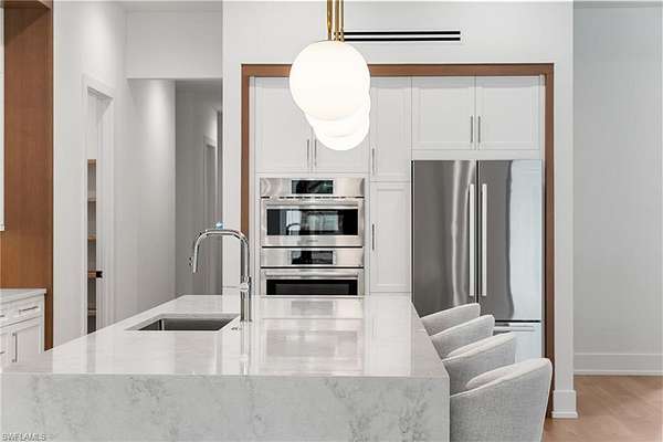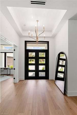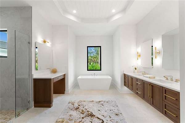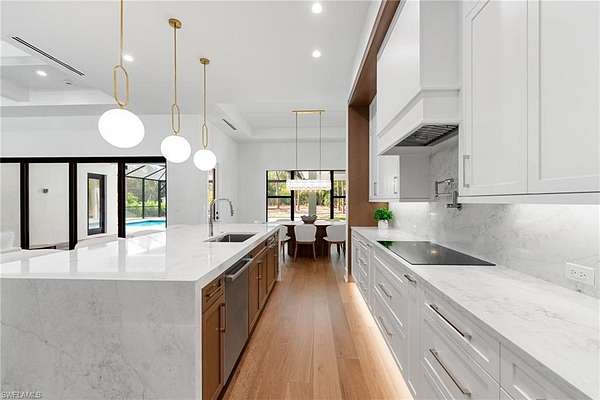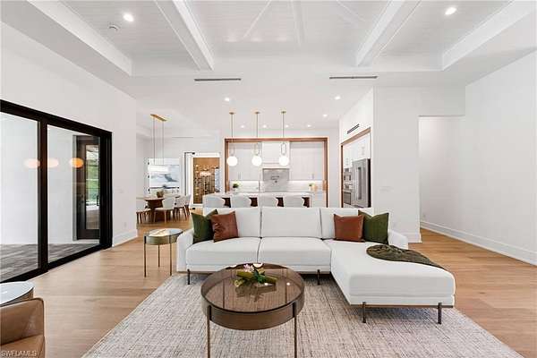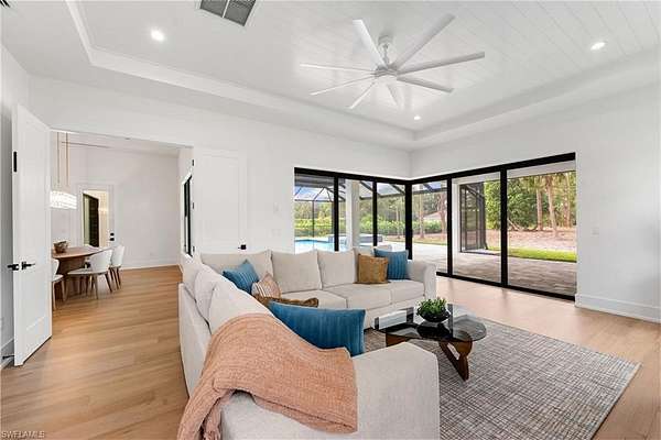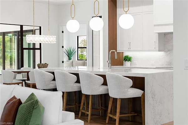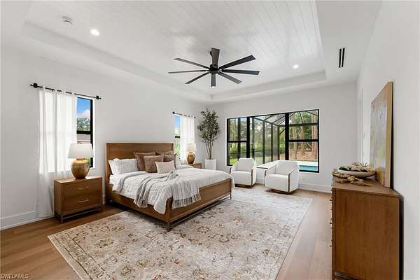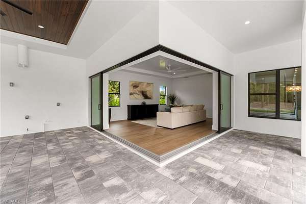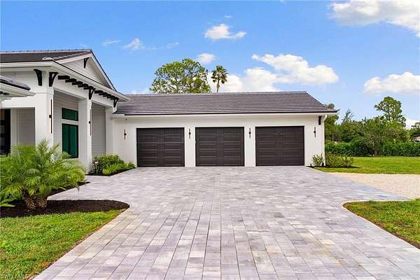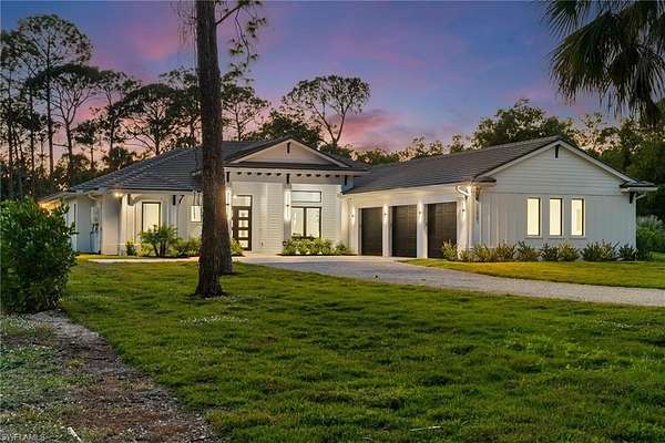 Experience an extraordinary blend of contemporary elegance, superior craftsmanship, and curated design in this brand-new, furnished estate by acclaimed builder Naples Gulfstream Homes. Situated on a 2.27-acre 100% upland parcel, this property offers unmatched privacy and space-an increasingly rare find-just 15 minutes from downtown Naples and its celebrated selection of fine dining, high-end boutiques, and Gulf beaches. Thoughtfully designed and masterfully executed, this 4 bed + den, 5 bath residence spans just under 4,000 sq. ft. of living space, with an open-concept floor plan that emphasizes clean lines, natural light, and seamless flow. Tesoro Naturalux oak flooring sets a warm, refined foundation throughout the living areas and bedrooms, the kitchen and baths feature tile flooring designed for both style and longevity. The gourmet chef's kitchen is a showpiece of modern luxury, featuring top-of-the-line Bosch appliances, induction cooktop, and custom two-tone cabinetry with warm oak accents. Striking Pompeii quartz countertops, including a large waterfall island with seating, anchor the space with an elevated yet inviting aesthetic. Each of the home's bathrooms showcases unique designer tilework, floating vanities, and contemporary fixtures. The primary suite is a retreat featuring a spa-quality bathroom with stone shower flooring, tile walls, and Pompeii quartz surfaces that create a tranquil atmosphere. Outdoor living is equally impressive. Oversized sliding doors open to a spacious paver lanai and custom pool & spa, thoughtfully designed for sun-filled relaxation and entertaining. Ample patio space accommodates dining, lounging, and gathering areas-making it ideal for hosting guests or enjoying Naples' beautiful climate year-round. Engineered to exceed expectations, this home is built to be hurricane-proof, offering exceptional peace of mind. Notable features include a reinforced concrete safe room, whole-house reverse osmosis system, a 1,000-gallon propane tank, and generator-ready electrical hookups. The home also includes a 1-year builder's warranty, underscoring Gulfstream Homes' commitment to quality and long-term durability. The property's size and freedom from HOA restrictions present rare flexibility. With 2.27 acres of premium uplands, there is abundant room to expand-ideal for adding a guest house, detached luxury garage or car barn, equestrian space, workshop, studio, or even a private pickleball court. This versatility allows the estate to evolve with your lifestyle or the needs of future buyers. Offered furnished, the interiors have been carefully appointed to complement the home's modern architecture and upscale finishes, allowing it to be enjoyed immediately as a turnkey luxury residence. This exceptional property represents a unique opportunity to own a newly built, move-in-ready luxury estate with high-end finishes, advanced engineering, and significant land-all within minutes of Naples' most desirable destinations.