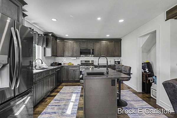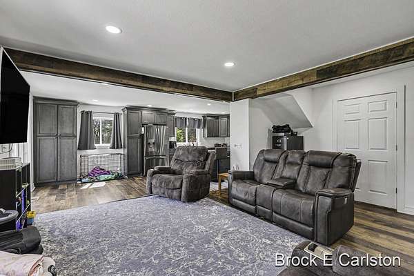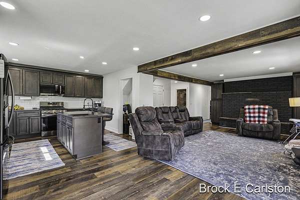 Set on 40 acres, this beautifully updated 4-bedroom, 2-bath home offers the perfect blend of privacy, modern upgrades, and functional living in the desirable Reeths-Puffer School District. The open-concept layout features a spacious living room with a cozy fireplace, main floor laundry, and seamless flow into the dining area with access to a deck overlooking the backyard and patio--ideal for entertaining or enjoying the peaceful setting. This home has been extensively renovated with major updates already completed, including a new roof, siding, and windows. The interior has been fully refreshed with new flooring, cabinets, carpet, and finished drywall, along with all-new insulation. Mechanical upgrades include a new furnace, tankless water heater, central A/C, and ductwork, as well as all-new electrical and water lines--providing peace of mind for years to come. The mostly finished basement offers excellent additional living space with potential for a 5th bedroom, making it ideal for guests, a home office, or expanding living needs. Outside you'll find an attached garage and a pole barn with power, complete with matching garage doors. The property has also been thoughtfully improved with all new concrete and asphalt driveway, a newly seeded lawn, and manicured trails throughout the acreage. The wooded portion has been professionally mulched (approx. $32K investment), and a path has been cut leading to Cedar Creek, creating a truly unique outdoor experience. Additional features include security cameras, a new mailbox, and a prepared site for a future pole barn build. This rare 40-acre property offers space, updates, and versatility--ready for you to move in and enjoy. Buyer and buyer's agent to verify all information.