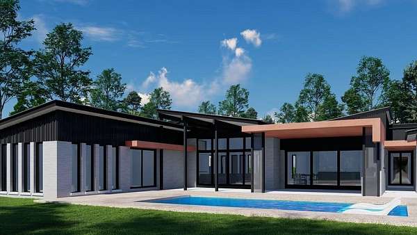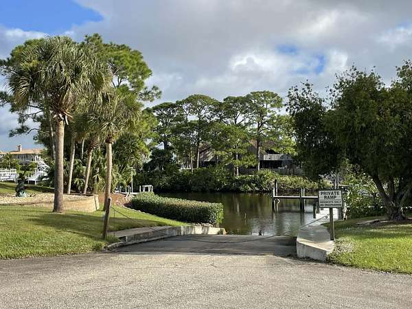 Rare opportunity to own a secluded 1 acre residential lot in Palm City with access from two streets and a deeded private dock slip. Located on a protected waterway just off the St. Lucie River, the community offers a boat ramp, deep water and quick ocean access, approximately 18 minutes to the inlet. The property includes approved contemporary architectural plans thoughtfully designed to complement the natural landscape. The proposed residence offers 3,104 square feet of living space with a total footprint of 4,988 square feet and features three en suite bedrooms with an optional fourth bedroom, a private office, a three car garage, and an expansive covered patio with a summer kitchen. Dual access allows flexibility for a guest dwelling, RV access, or other uses. Surrounded by large