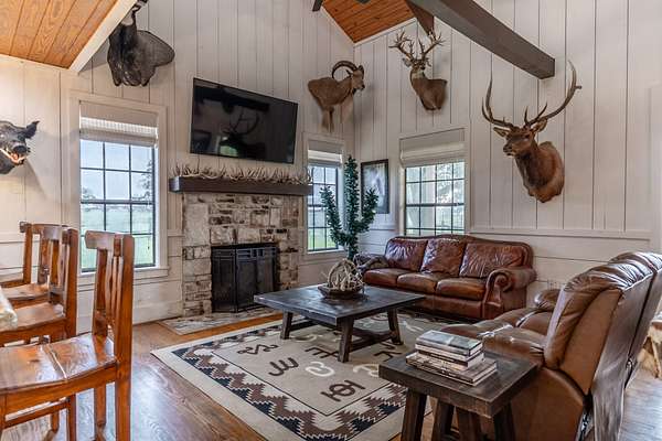 Apache Hill Ranch is a highly sought-after high-fenced property that offers the perfect balance of recreation, agriculture, and relaxation. This 200+- acre portion includes the main lodge, multiple barns for storage, and several scenic ponds. Whether you're interested in hunting, cattle ranching, or simply enjoying a peaceful countryside retreat, this well-maintained property presents endless possibilities for a wide range of buyers.