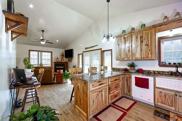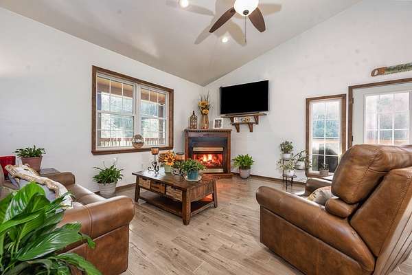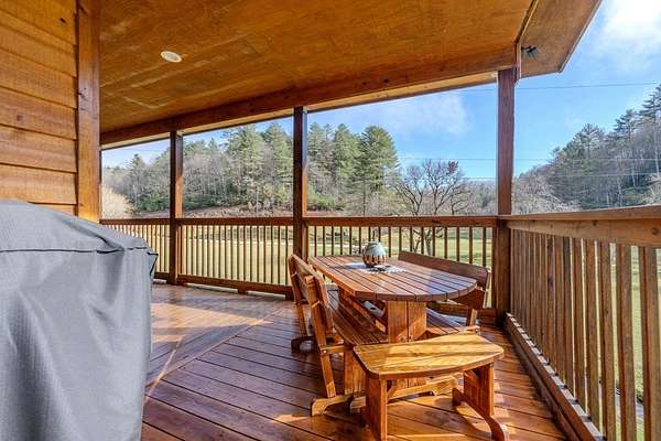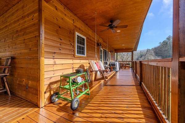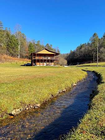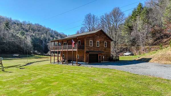 10+/- Acre Unrestricted creek front home near Queens Lake! Finished construction in 2023, this 2bed, 3 bath home is basically NEW with low maintenance. Trout filled Queens Creek runs through the property and is surrounded by a mix of pasture and woods. Enjoy year-round views of the surrounding mountains from the wrap-around porch. Inside, you'll find an open main living area with cathedral ceilings and a gas log fireplace. The kitchen showcases beautiful hickory cabinetry paired with granite countertops. Each bedroom comes with its own private bath for added convenience. Large walk in closet in the Main bedroom. The full basement with central AC/Heat adds tremendous value, providing the ability to park two cars in a tandem-style layout or convert this space to create additional living areas or guest accommodations. The lower level also features a laundry room and a full bath, enhancing functionality. 13kw Generac Full House Generator. Located just minutes from Lake Nantahala & River and nearby hiking trails, this is a rare find so don't miss out on this incredible opportunity!