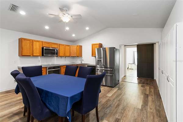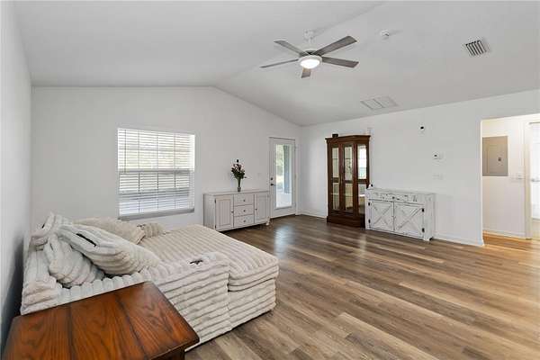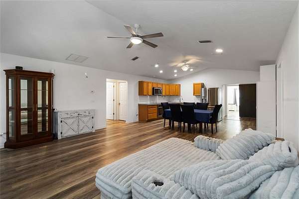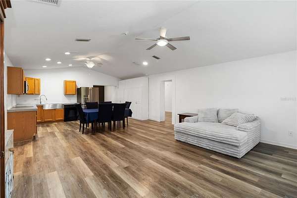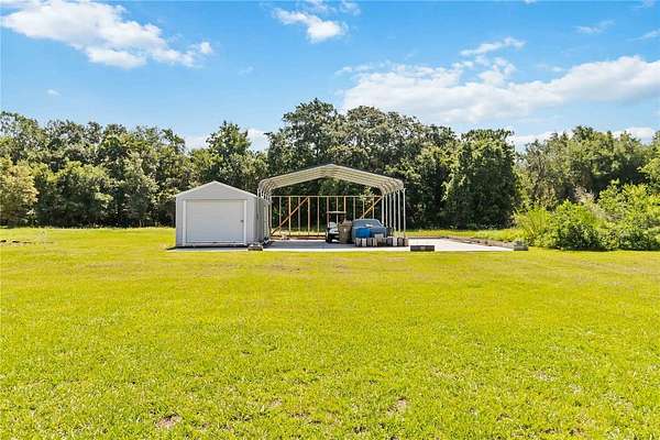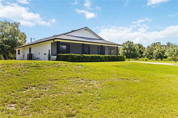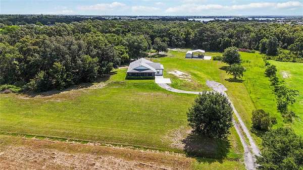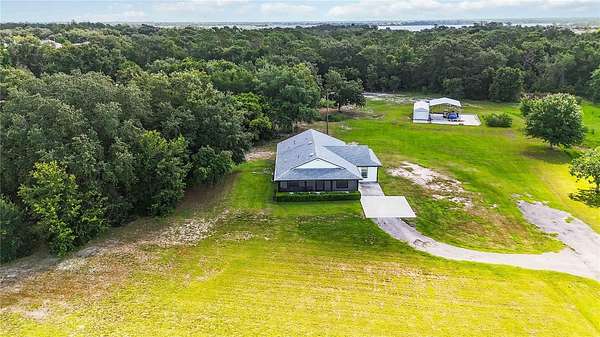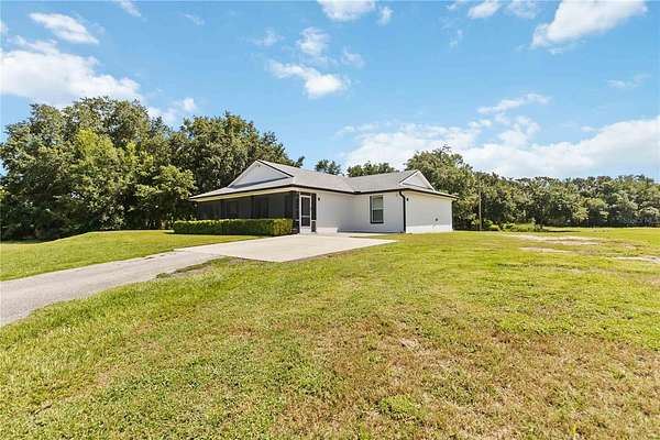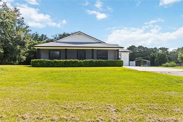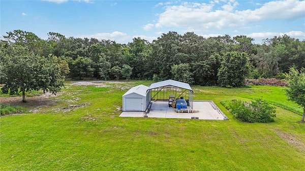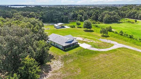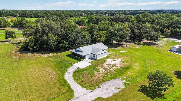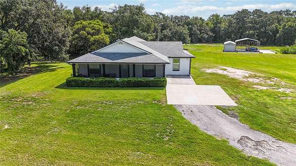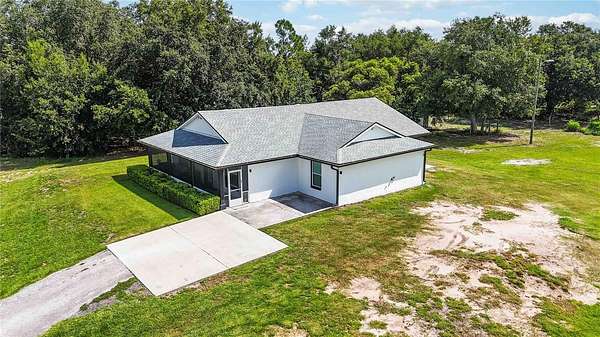 Welcome to this charming 2,543 sq. ft. block home situated on 4.87 acres, offering the perfect balance of peaceful country living and quick access to some of Florida's most exciting destinations. Set in an area poised for strong future appreciation, this property provides not only a beautiful lifestyle but also an excellent investment opportunity. Step inside to discover a spacious open floor plan connecting the kitchen and living room, creating an inviting space perfect for everyday living and entertaining. The kitchen boasts stainless steel appliances, a farm sink, and plenty of counter space, seamlessly flowing into a large living area and an additional 10' x 24' flex room ideal for a playroom, office, or guest room. The expansive primary bedroom features ample closet space and a luxurious en-suite bath with a walk-in shower and dual sinks. Two additional bedrooms each enjoy their own full bathrooms, ensuring comfort and privacy for family and guests. Outside, you'll find a 40' x 60' concrete pad, including a 20' x 24' covered section perfect for boat, RV, or outdoor equipment storage, plus a 15' x 30' storage shed for added convenience. Just minutes from Disney, Melbourne Beaches, Orlando International Airport, and more, non-HOA community offering freedom and flexibility and Endless possibilities for outdoor fun--from bonfires to family cookouts. Turn this countryside retreat into your dream home and secure a bright future in one of Florida's most promising areas!
