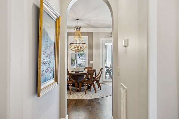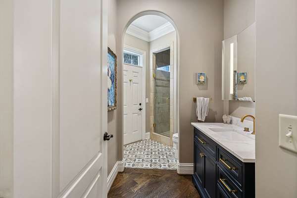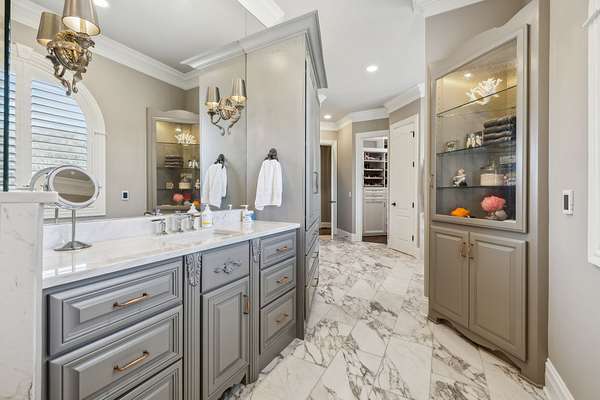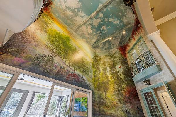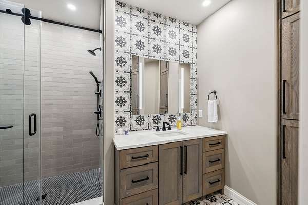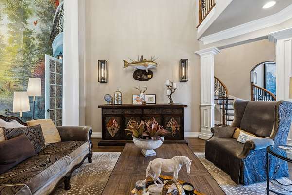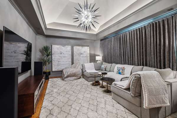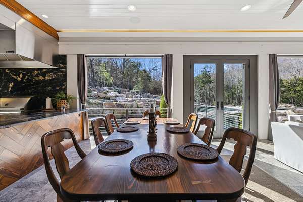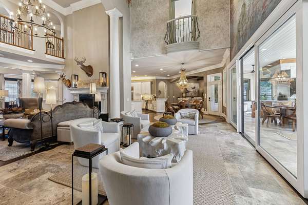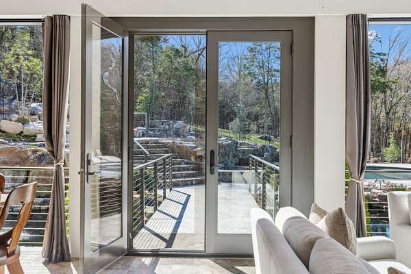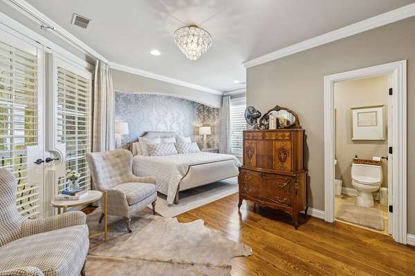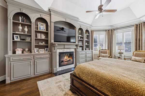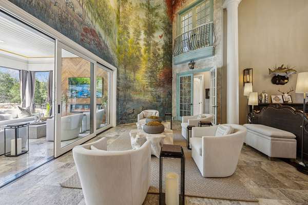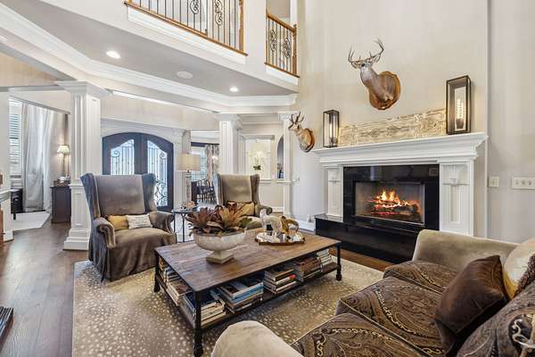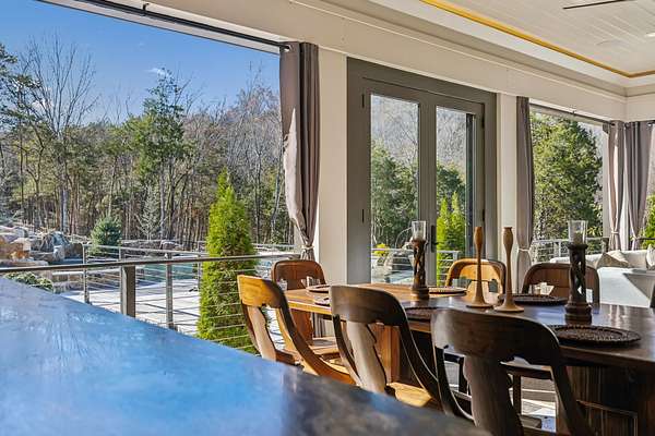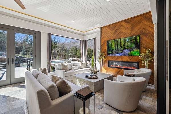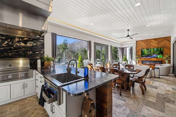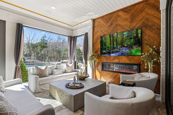 Inside: high ceilings, hardwood, tile, custom millwork, exposed brick, curved staircase, and expansive windows providing natural light. Main-level primary suite offers a spa-style bath with heated floors, soaking tub, dual vanities, oversized shower, and custom closets. This home has a well-equipped kitchen w/updated appliances. Generous gathering spaces and a three-season patio features heated floors, fireplace, cypress accents, full dining area, and chef’s kitchen with commercial-grade venting.