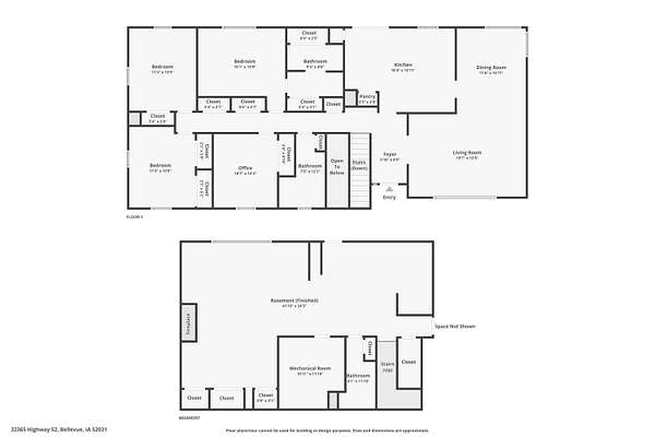 - Basement, Bathroom x 3, Bedroom x 4, Dining Room, Family Room, Kitchen, Living Room