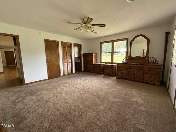 Nestled at the foot of Cove Mountain in the heart of Wears Valley ,this spacious home offers 3 bedrooms and 3 bathrooms, including two primary suites-one on the main level and one upstairs. The main-level suite provides direct access to a covered porch, perfect for enjoying the peaceful setting. Inside, you'll also find a large sunroom offering additional living space and abundant natural light. The property includes a one-car attached garage plus a detached 2-car garage with a 1 bedroom 1 bathroom apartment above-ideal for guests, rental potential, or extended family. Additional features include an RV/motorhome garage, a barn/shed in the backyard, and a charming gazebo for outdoor enjoyment. A new metal roof was installed in 2024. Seller notes the A/C in the apartment is not currently working. This home is located conveniently between Pigeon Forge and Townsend close to area attractions and only minutes to the Great Smoky Mountains National Park.