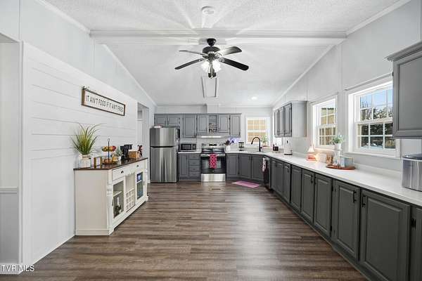 Beautifully Remodeled 3-Bedroom, 2-Bathroom Triplewide Manufactured home, on 2.8 Acres in Kingsport with Home Warranty included! Nestled on almost 3 peaceful acres, this move-in ready 1856 square foot home provides the perfect blend of tranquility and convenience. It sits minutes from major shopping, restaurants, and amenities with lower property taxes just outside the city limits. Welcome to turnkey living on a quiet piece of countryside! Whether you're looking for a serene retreat or a place to call home that's close to it all, this is the ideal spot for you! This property has been meticulously updated with a brand new HVAC system and ductwork (2024), all-new PEX plumbing throughout, all new plumbing and bathroom fixtures, new metal roof (2024), and new metal siding accents the spacious back porch area. The home also has been freshly painted, and new energy-efficient windows installed in the kitchen. The high quality 5/20 luxury vinyl plank flooring throughout is not only stylish but also scratch-proof and waterproof, perfect for any lifestyle. The current owners are offering a 1-year home warranty for that extra peace of mind. Step inside to find a spacious living room with an electric fireplace, that leads into the kitchen, which is a chef's dream - featuring 28 feet of cabinets with new manmade stone countertops and hardware, stainless GE appliances, and a sleek new hood above the range. The main suite is a true retreat with three walk-in closets, providing incredible storage, and a separate bathroom with a new walk-in shower. Outside, you'll love the huge 12' x 66' outbuilding with a new metal roof, metal siding, and electricity, ideal for additional storage or a workshop. The expansive 2.8-acre lot offers plenty of space and privacy to enjoy outdoor activities, gardening, or simply unwinding in nature. Nestled on a quiet street offering the tranquility of the countryside, 3238 Wil Rho Circle is an oasis of peace and convenience. Located just 1.1 miles from Walgreens and Weigel's, and Fire Station 8, and only 2.1 miles from Target and Aldi, you'll have everything you need within easy reach. All information deemed reliable but not guaranteed. Buyer or buyer's agent to verify all information provided.