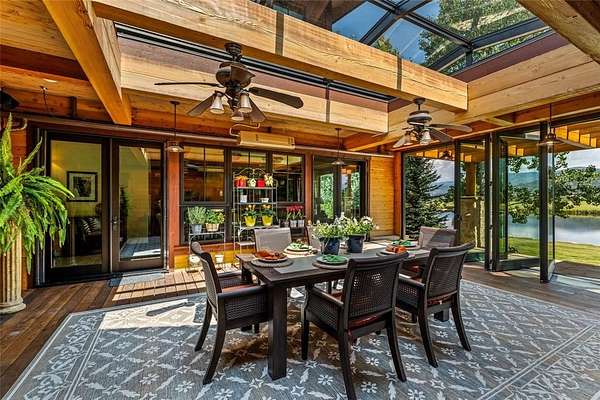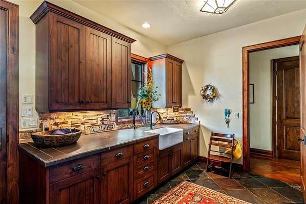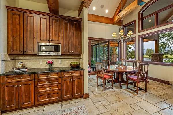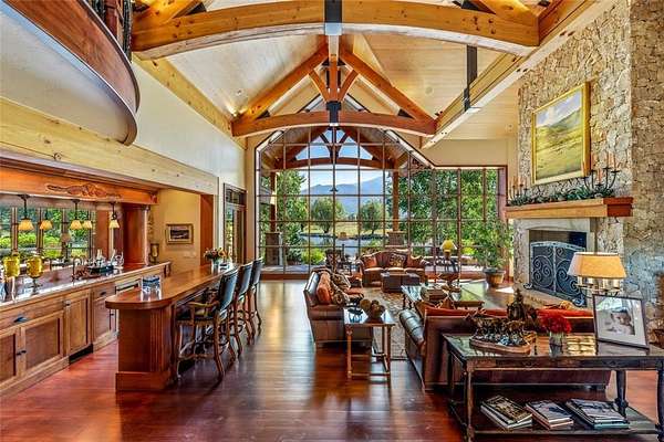 Wild Goose Ranch is an iconic property located in the South Valley of Steamboat with incredible water surrounding the estate. The property incorporates a waterfall, 3 ponds, creeks and extraordinary water features. Offering 35.5 acres of land and complimented by an adjacent conservation easement with 120+ acres, it is hard to believe this property is located just minutes from the ski area and downtown Steamboat. Stunning in every way, this multi-generational home is both luxurious and tranquil with an unparalleled setting. Entering the front entrance, you are greeted with a 2-story bank of windows perfectly framing the ski area. Cathedral ceilings, custom woodwork, and a beautifully designed open concept, this home stands out as the South Valley's premier estate. The gourmet kitchen is built with the chef in mind with an abundance of natural stone counter space and a beautifully designed island finished with an everyday dining nook, wine storage, and pantry. The kitchen flows directly into a main dining room that is truly impressive and will easily accommodate twelve or more guests. The home is designed to entertain with media room, custom handcrafted bars, 5 custom fireplaces, and multiple dens and entertainment areas. Each wing of the home is connected with breezeways, sitting rooms and an emphasis on the water surrounding the home. The primary wing has both privacy and a multitude of outdoor spaces surrounded by majestic views of the hay fields and mountains of the South Valley. Encompassing the primary wing is an office, custom fireplaces, spacious 5-piece bath and an incredible dressing room. The final breezeway links four ensuite guest suites, including two bunk rooms. The estate is environmentally balanced with solar arrays. The home's key feature is its smooth integration of outdoor areas, with seamless indoor-outdoor transitions amid ponds and water features. An exclusive offering in the iconic tranquility of the South Valley.