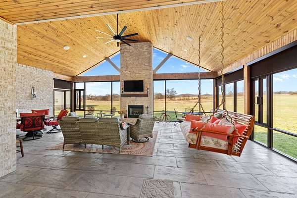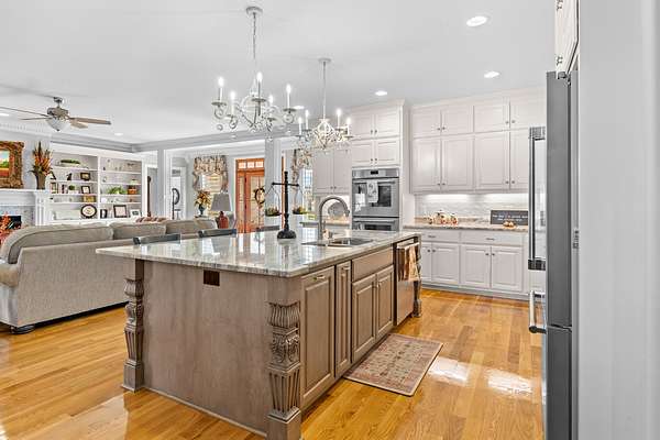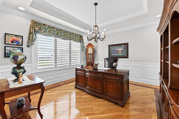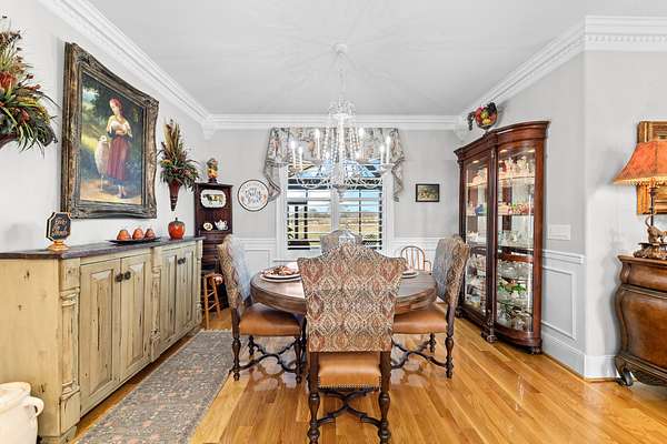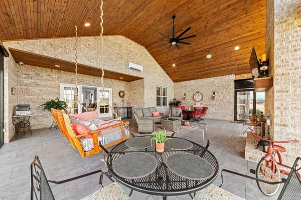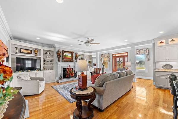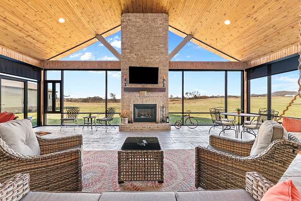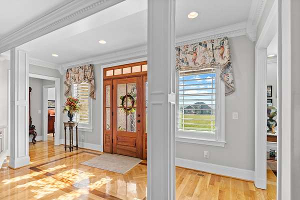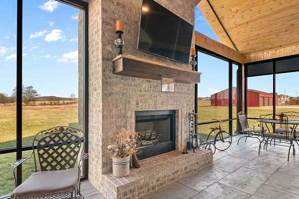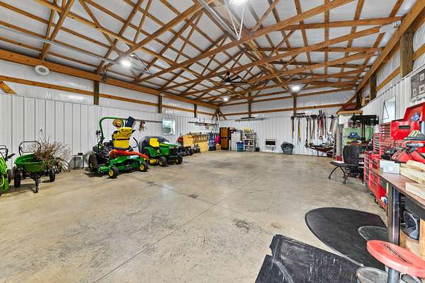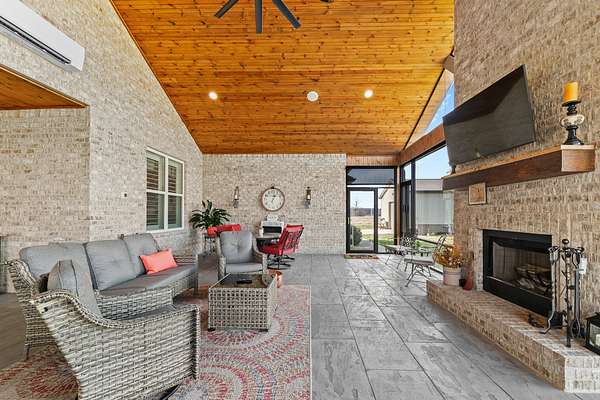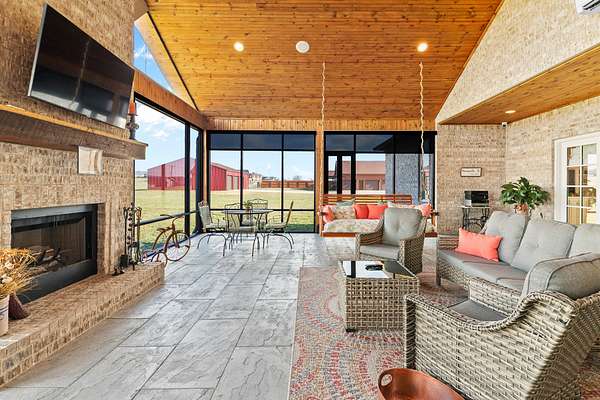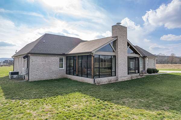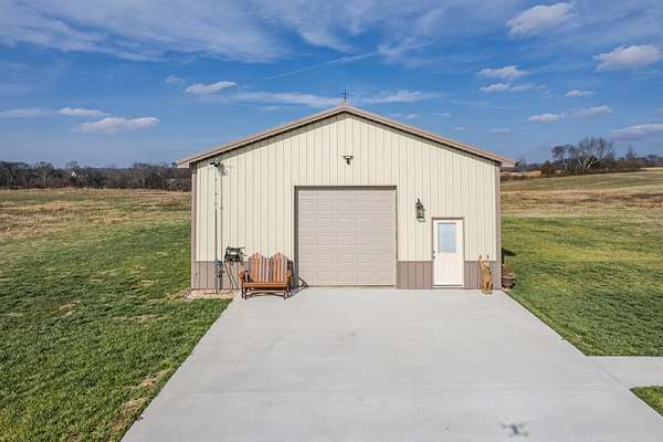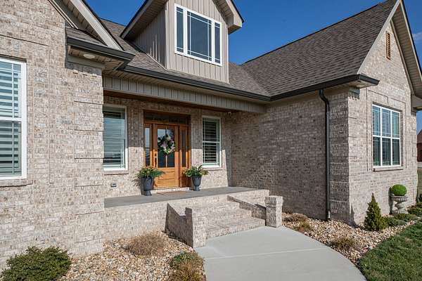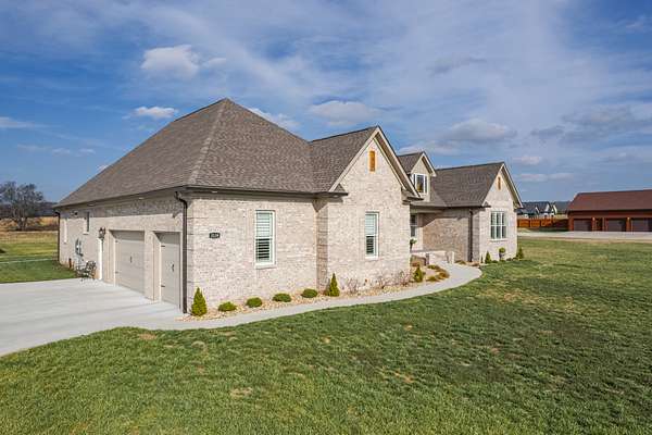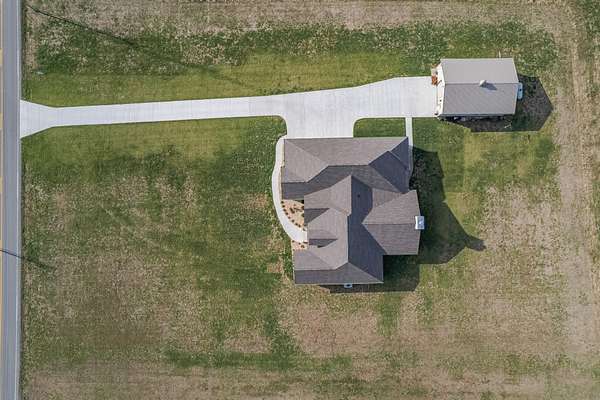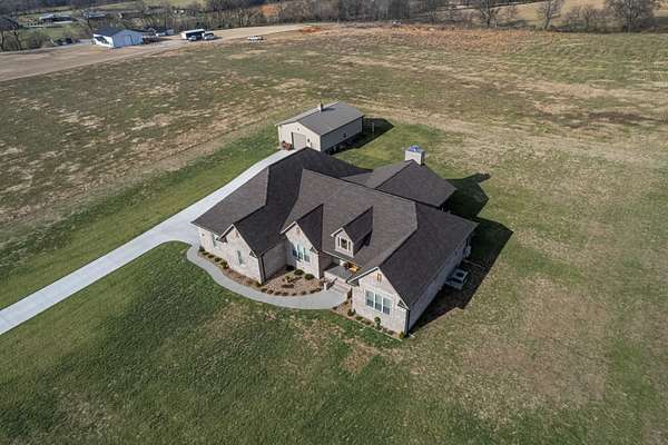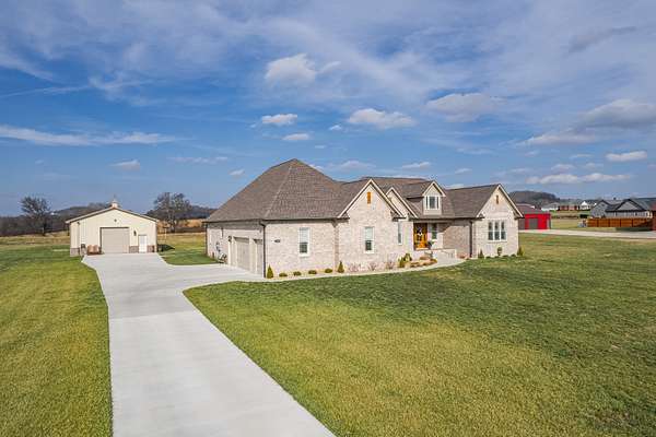 Introducing a stunning custom-built 3 bdrm 3 1/2 bath home that offes luxury and elegance in every detail. Situated on 1.5 Acres.As you enter, be captivated by the herringbone inlay at the entrance, complemented by a beautiful mahogany front door.This exquisite residence features meticulously crafted dentil crown molding and plantation shutters gracing all windows, White oak flooring flows seamlessly through the home eliminating all carpet for a clean, sophisticated look.The living rm invites you with a gas fireplace and built-in shelves. The dining area showcases elegant wainscoting.The kitchen is a chef's dream, complete with granite countertops, a styish tile backsplash, a 6x8 island and equipped with Thermador appliances.Custom cabinets feature soft close and pullout drawers. The office has a tray ceiling with wainscoting. All bdrms have a full bath with walk-in closets. The primary bdrm is a serene haven with its tray ceiling and a cozy sitting room. The primary bath is a luxurious escape, featuring a huge walk-in shower, separate tub, and a large double vanity . Step into the magnificent 813 sq. ft. heated and cooled sunroom, complete with a wood-burning fireplace and vaulted tongue-and-groove ceiling. The stamped concrete floor and fireplace add a touch of craftsmanship. With an oversized 3 car side attached garage and a spacious 30x40 detached shop, this property has everything you need and more. Every detail has been thoughtfully designed for comfort and elegance.