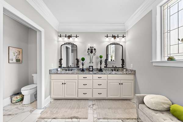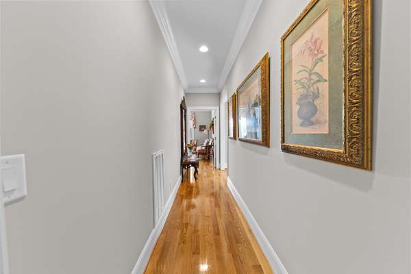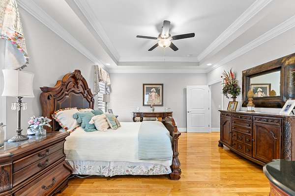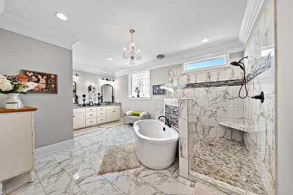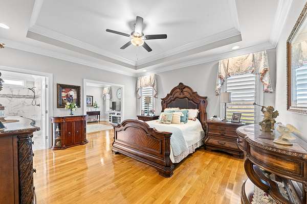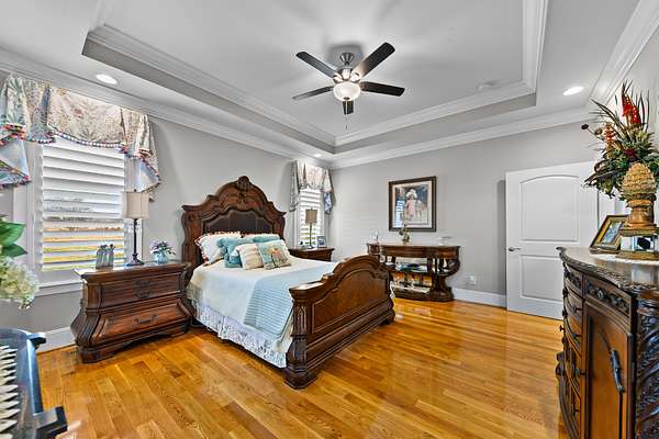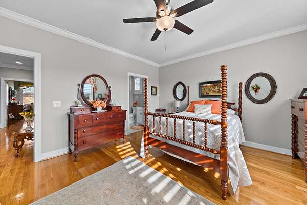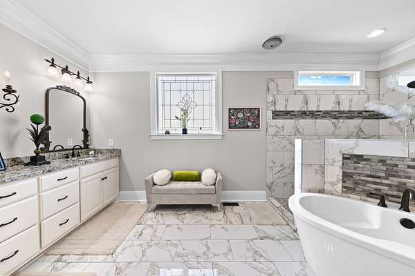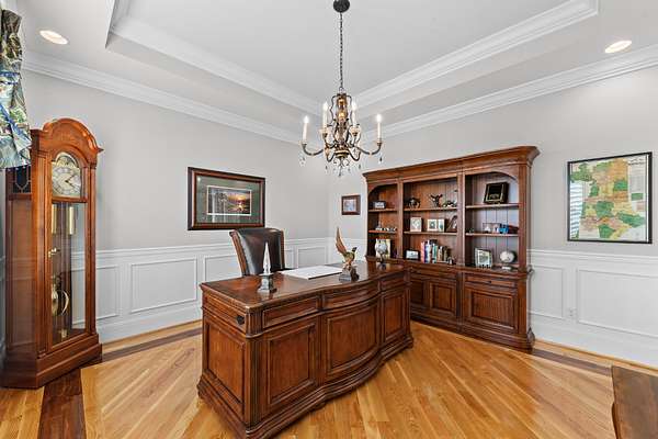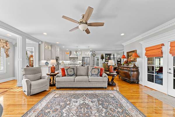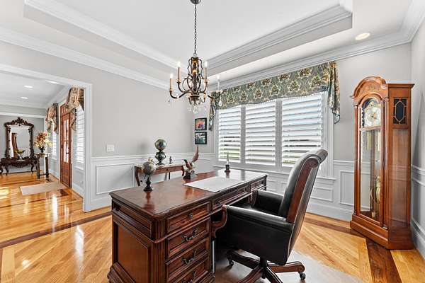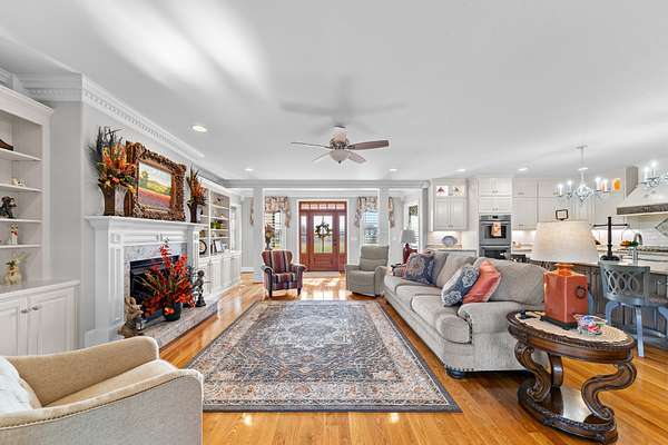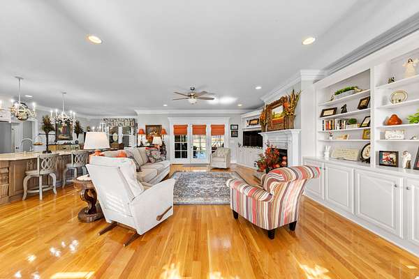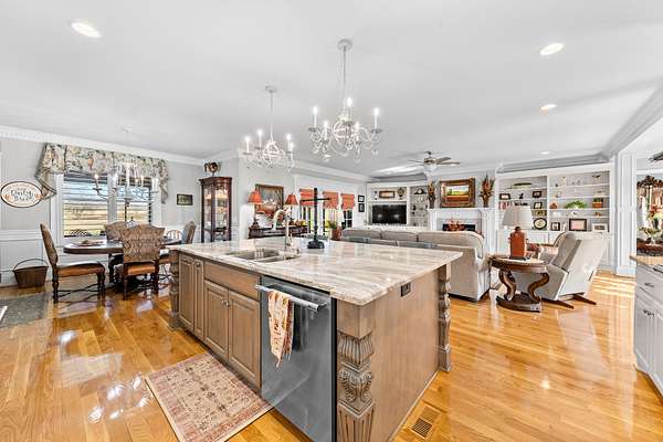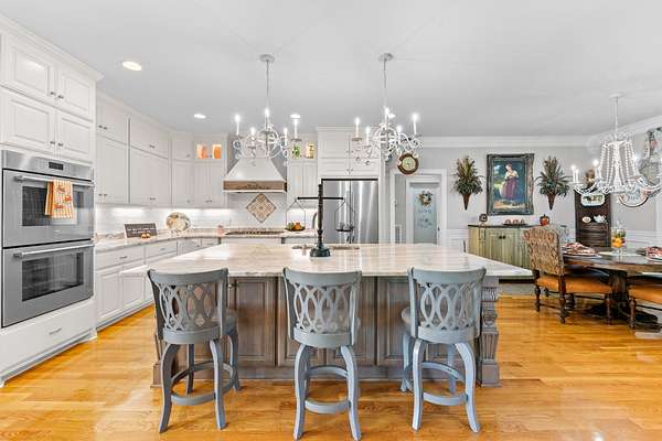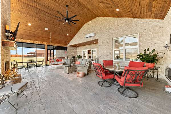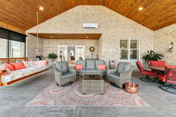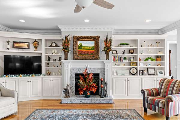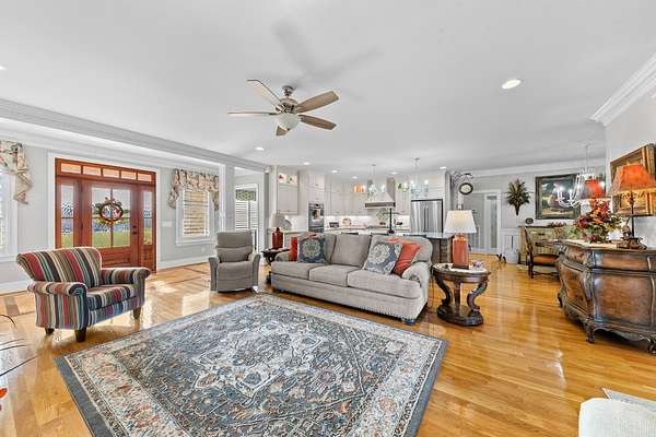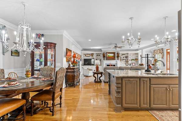 Introducing a stunning custom-built 3 bdrm 3 1/2 bath home that offes luxury and elegance in every detail. Situated on 1.5 Acres.As you enter, be captivated by the herringbone inlay at the entrance, complemented by a beautiful mahogany front door.This exquisite residence features meticulously crafted dentil crown molding and plantation shutters gracing all windows, White oak flooring flows seamlessly through the home eliminating all carpet for a clean, sophisticated look.The living rm invites you with a gas fireplace and built-in shelves. The dining area showcases elegant wainscoting.The kitchen is a chef's dream, complete with granite countertops, a styish tile backsplash, a 6x8 island and equipped with Thermador appliances.Custom cabinets feature soft close and pullout drawers. The office has a tray ceiling with wainscoting. All bdrms have a full bath with walk-in closets. The primary bdrm is a serene haven with its tray ceiling and a cozy sitting room. The primary bath is a luxurious escape, featuring a huge walk-in shower, separate tub, and a large double vanity . Step into the magnificent 813 sq. ft. heated and cooled sunroom, complete with a wood-burning fireplace and vaulted tongue-and-groove ceiling. The stamped concrete floor and fireplace add a touch of craftsmanship. With an oversized 3 car side attached garage and a spacious 30x40 detached shop, this property has everything you need and more. Every detail has been thoughtfully designed for comfort and elegance.