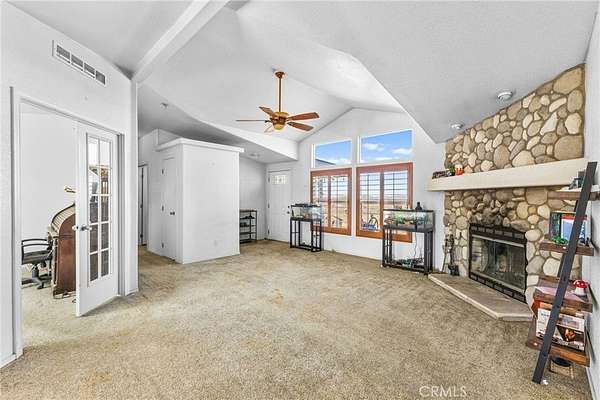 Set on more than two acres in Landers, this 3-bed, 2-bath home offers room to spread out and a layout that feels easy to live in. A wide wooden front porch with a trellis for soft shade leads you inside, where a cathedral-ceiling living room gives the space an open, airy feel. Paned-glass French doors open to a bonus room--great as a studio, playroom, office, or whatever extra space you've been needing. The kitchen blends a breakfast bar with a dedicated dining area, and the bedrooms are arranged with privacy in mind. The primary suite sits just off the living room and includes a walk-in closet and a spacious bathroom with both a spa tub and a separate shower. The two additional bedrooms are on the opposite side of the home, each with overhead storage above the closets and nearby access to the second bath. Outside, there's plenty of usable land plus a mix of practical extras: a two-car garage or lockable storage structure, a shed, and a storage container--ideal for tools, gear, or project space. With its wide-open setting, great natural light, and a layout that invites both quiet living and creativity, this property gives you room to make it genuinely your own. Broker and agents do not represent or guarantee the accuracy of the square footage, income, expenses, condition, development potential, bedroom/ bathroom count, lot size or lot lines, dimensions, permitted or non-permitted spaces, or school eligibility. Buyer is advised to independently verify the accuracy of all information with appropriate professionals. There are no warranties or guarantees, buyer to rely solely on his/her/their own findings.