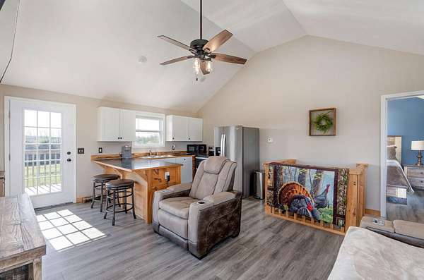 From I-44, take Exit 88 (MO-125) north toward Fair Grove. Continue on MO-125, then turn right onto State Hwy DD. Follow DD to Hwy J, then take Old Wire Rd to State Hwy E. Turn right on Minor Rd, then right on Broam Dr. Follow the shared driveway as it curves to the right. It will lead directly to the home.