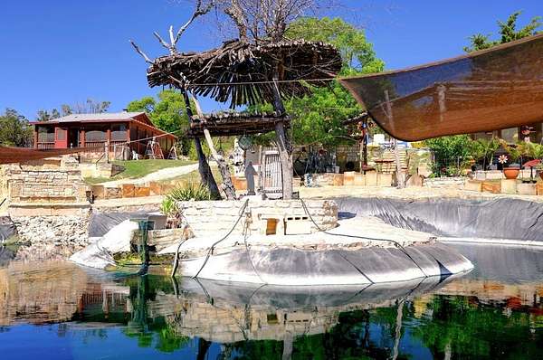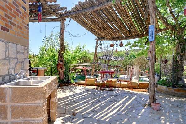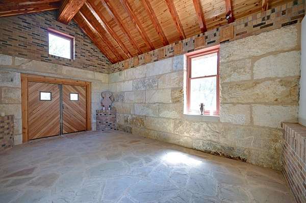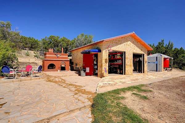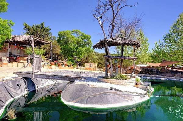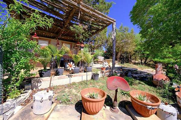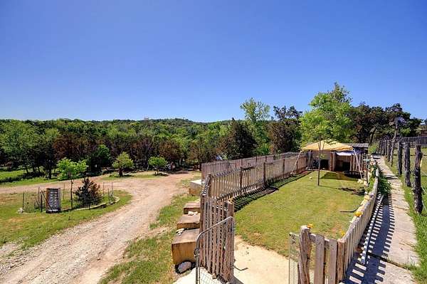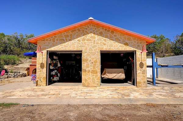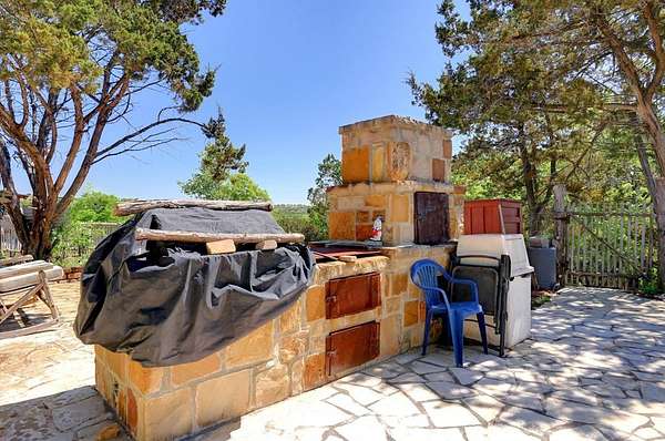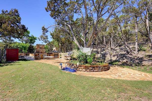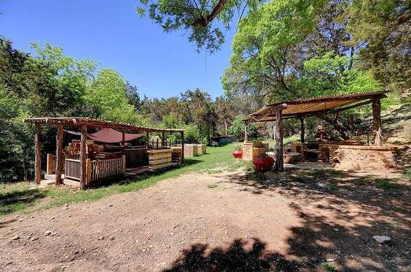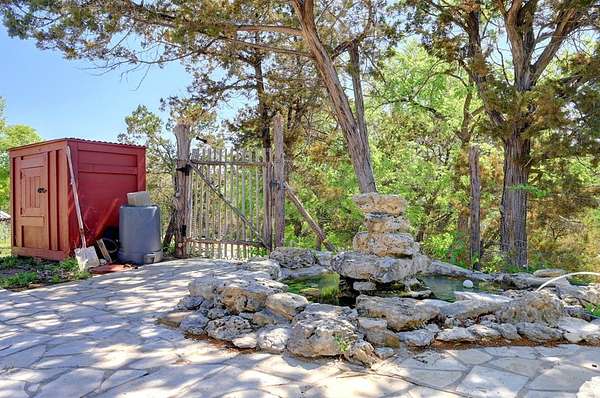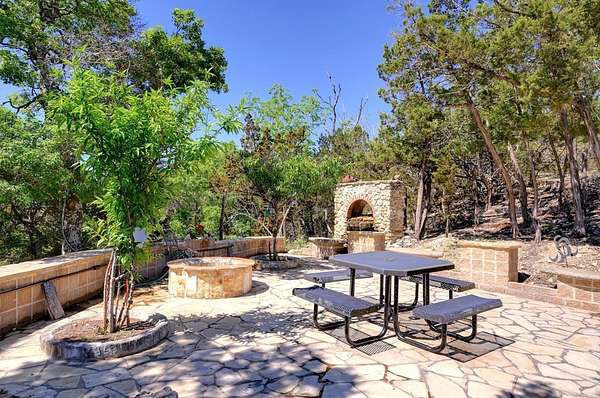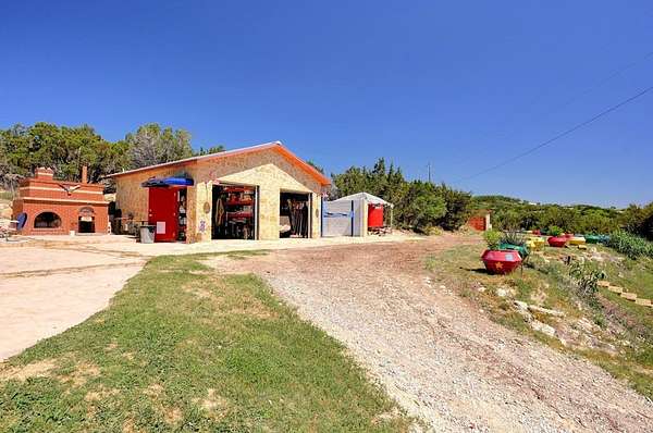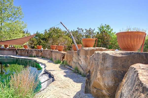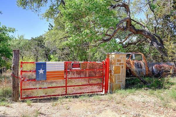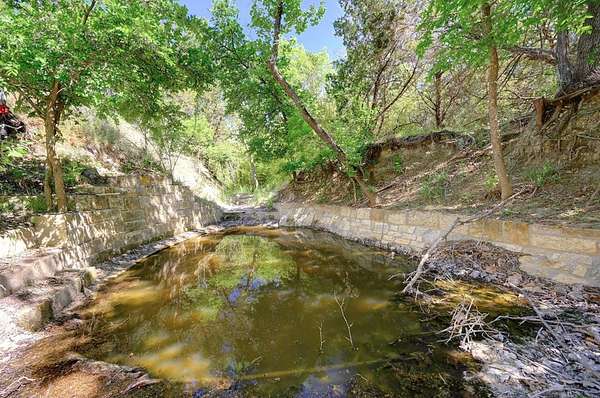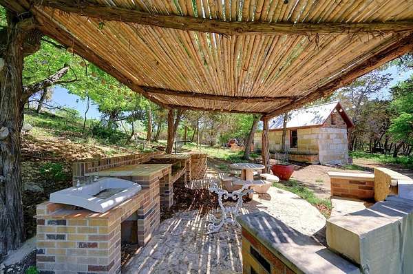 Amazing Unicorn Property!!! 18 +/- Unrestricted acres with huge views and wet weather creek. Massive Sycamore Trees and Large Oaks abound on this hidden gem of a property. Owners are stone masons and lots of amazing stonework has been done on the property. Everything is extremely well built. There is a cozy cabin to stay in while you build your forever home. Two car detached garage with lift rack. There is a chapel built from solid 2'x4' limestone blocks that is just amazing. Several outdoor kitchens on property. Wood fired Pizza Oven, numerous fountains and patio areas to enjoy the views and Hill Country. Two Ponds with Coy fish. Electrical and water lines have been installed all across the property. There is also a foundation for a forever home that was started. Part of the creek has had the walls rocked in to create a natural swimming hole. Dog lovers take note the owner has built a large dog run with a dog palace. It's heated and air conditioned. There is a pool for his dogs to cool off in under a shaded porch. He keeps the Saint Augustine grass watered and lush for his furry friends.