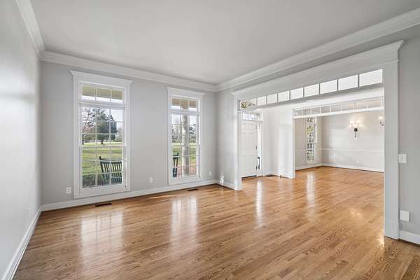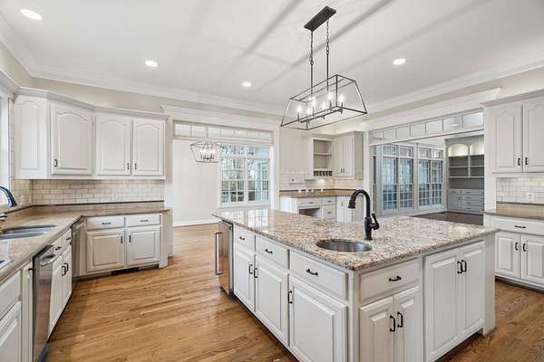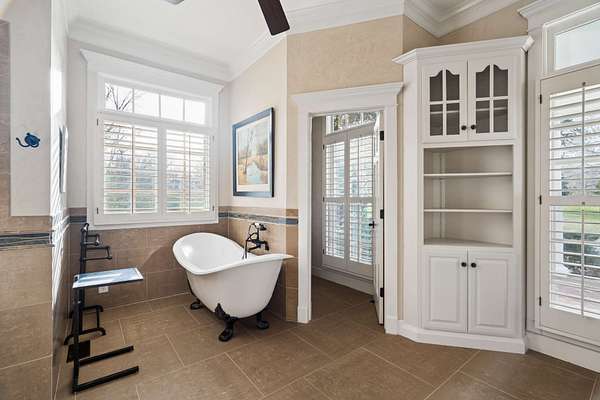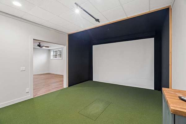 The interior boasts beautiful hardwoods throughout and a two-story family room equipped with a wall of windows, built-ins, and a gas fireplace. The chef’s kitchen includes a walk-in pantry, double ovens, and ample storage, complemented by a sunroom for quiet evenings. The primary suite serves as a retreat with a clawfoot tub, walk-in shower, and double vanities. Additionally, the basement provides versatile space for a workout station, golf simulator, and kitchenette, with direct access to an outdoor firepit.