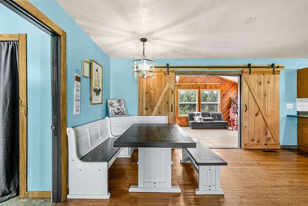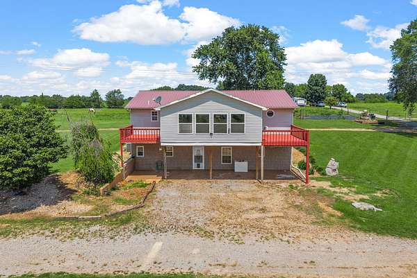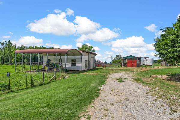 Sprawling 33 acre cattle farm with two spring-fed ponds with full finished basement with sleeping quarters and kitchen. Two bedrooms on the main level with a huge kitchen and beautiful sunroom. 2 large barns located on property. Over 30 acres fenced. Working ally and cattle chute, chicken coop with automatic door, large garden that produces. Home is located at a dead end road. Hunt the property that is full of ducks, deer, turkey, geese, dove, and so much more! Included with the home will be 3 cows that are due to calf this fall, one bull, and one steer. Farm equipment such as 16 ft trailer, 2020-4044 4wd tractor will convey with property.