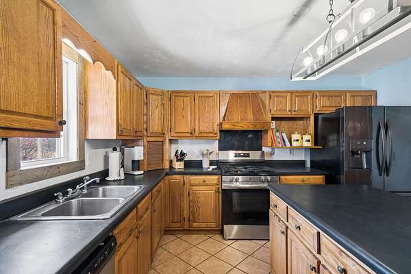 - Dishwasher, Electric Oven, Electric Range, Refrigerator, Stainless Steel Appliance(s)