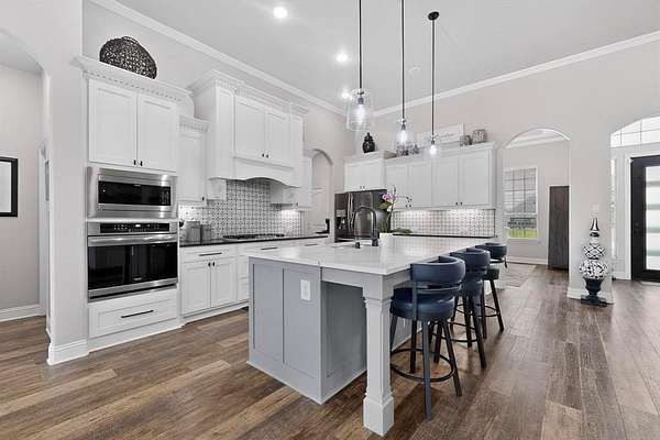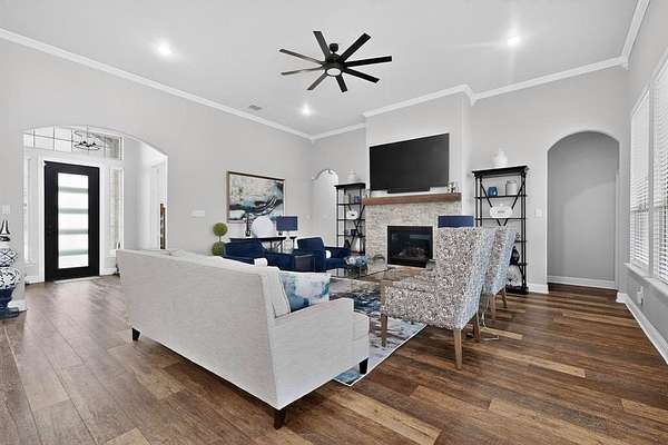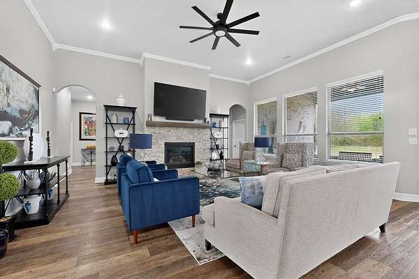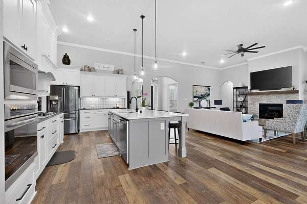 Step into comfort and style with this beautifully designed 4-bedroom home, perfect for both everyday living and entertaining. Situated outside the city city limits on 1.5 acres! This spacious designer residence features an open-concept floor plan with abundant natural light, creating a warm and inviting atmosphere throughout.