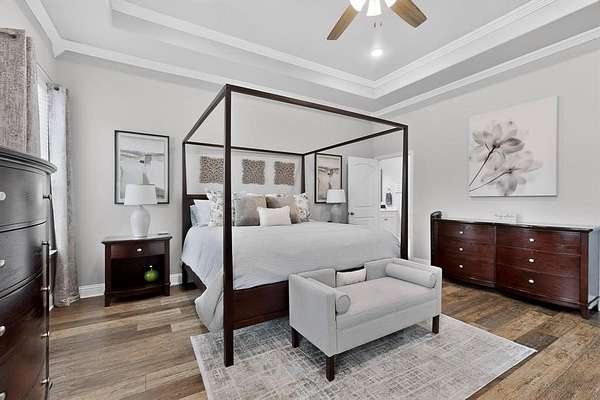 The modern kitchen is a true centerpiece, offering ample counter space, sleek cabinetry, and a seamless flow into the dining and living areas—ideal for hosting family and friends. The primary suite provides a private retreat with a generous layout and a relaxing en-suite bathroom.